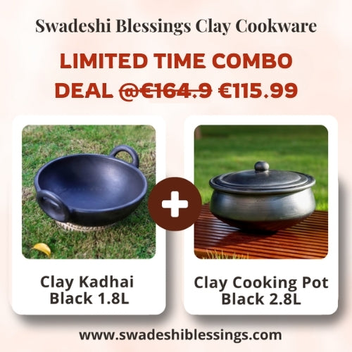 Elevate your cooking experience with Swadeshi Blessings' handcrafted Clay Cookware made by skilled artisans in Rajasthan, India. A touch of tradition that leaves a lasting impression.