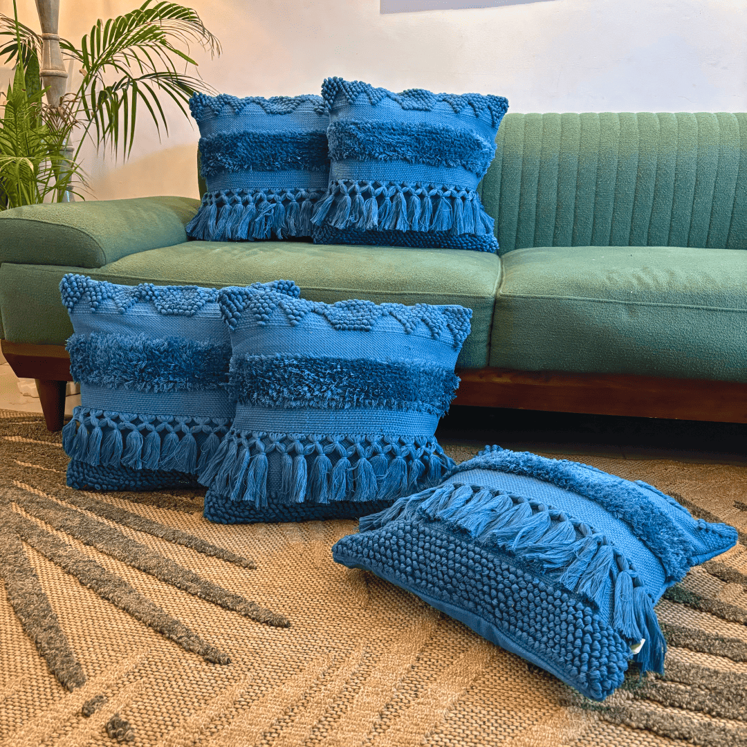 Azure Bliss Tufted Cushion Cover - Set of 5