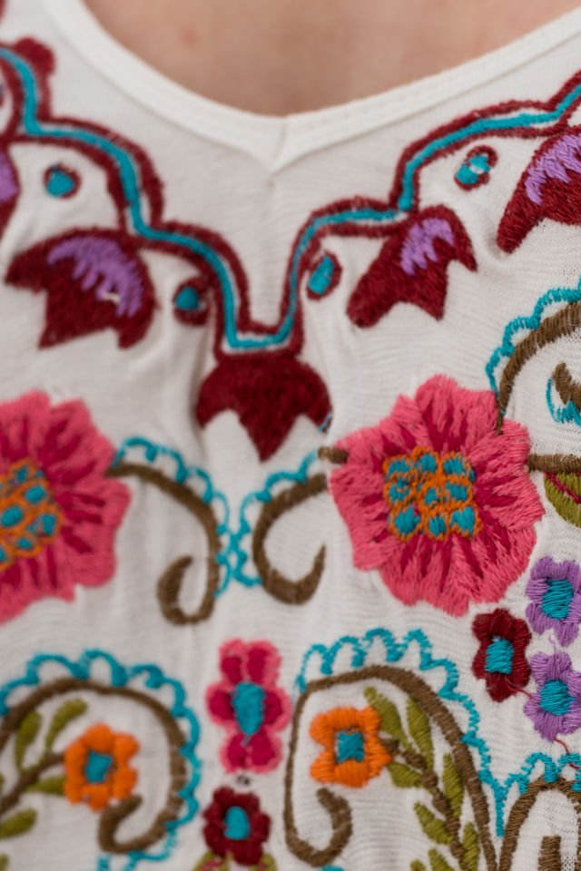 Bluză Alba Cu Broderie Multicolora Mărime M-L
