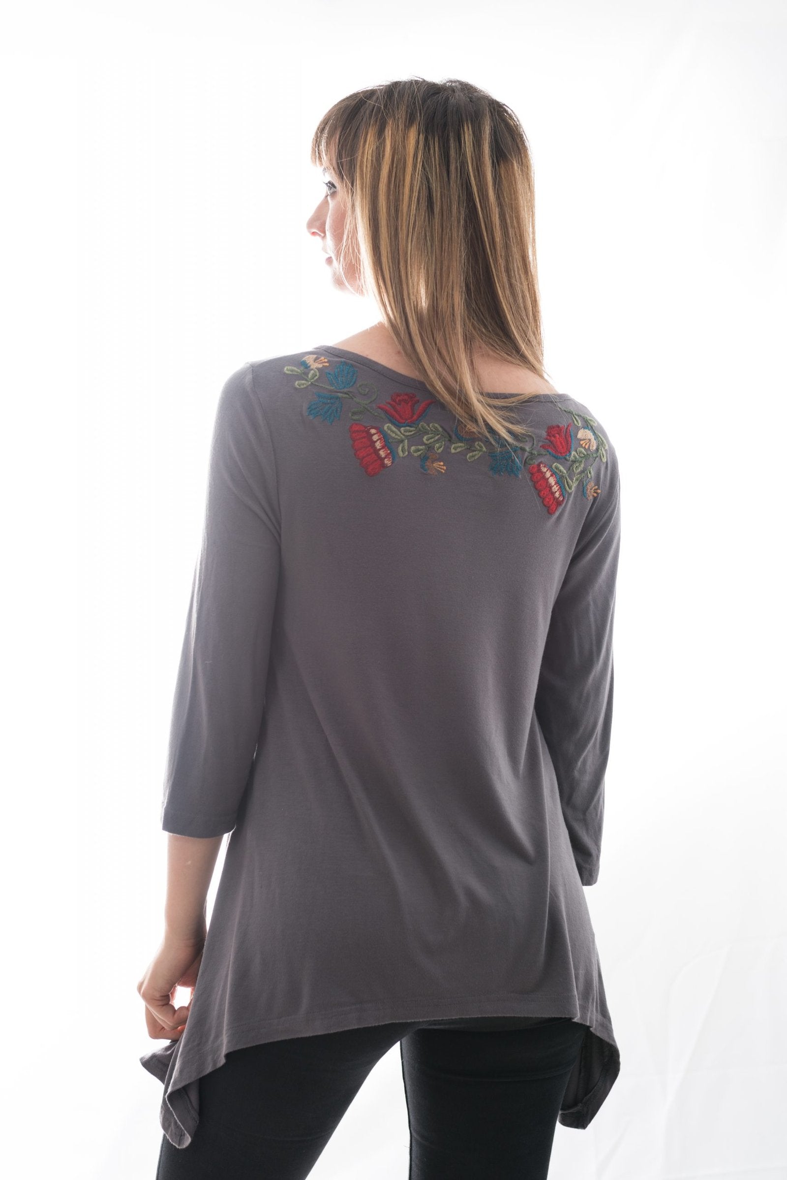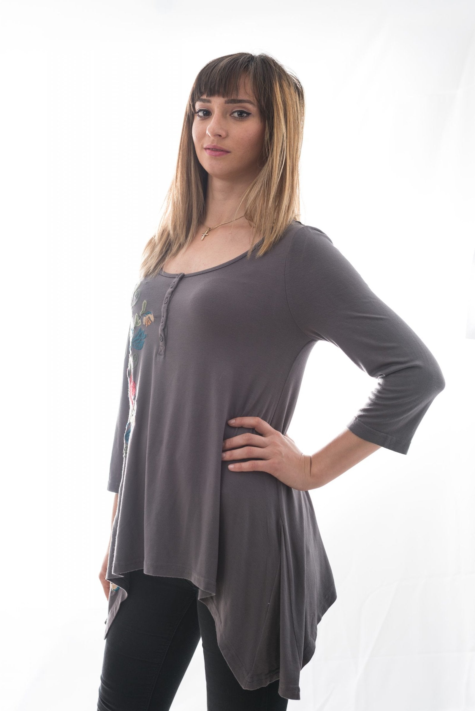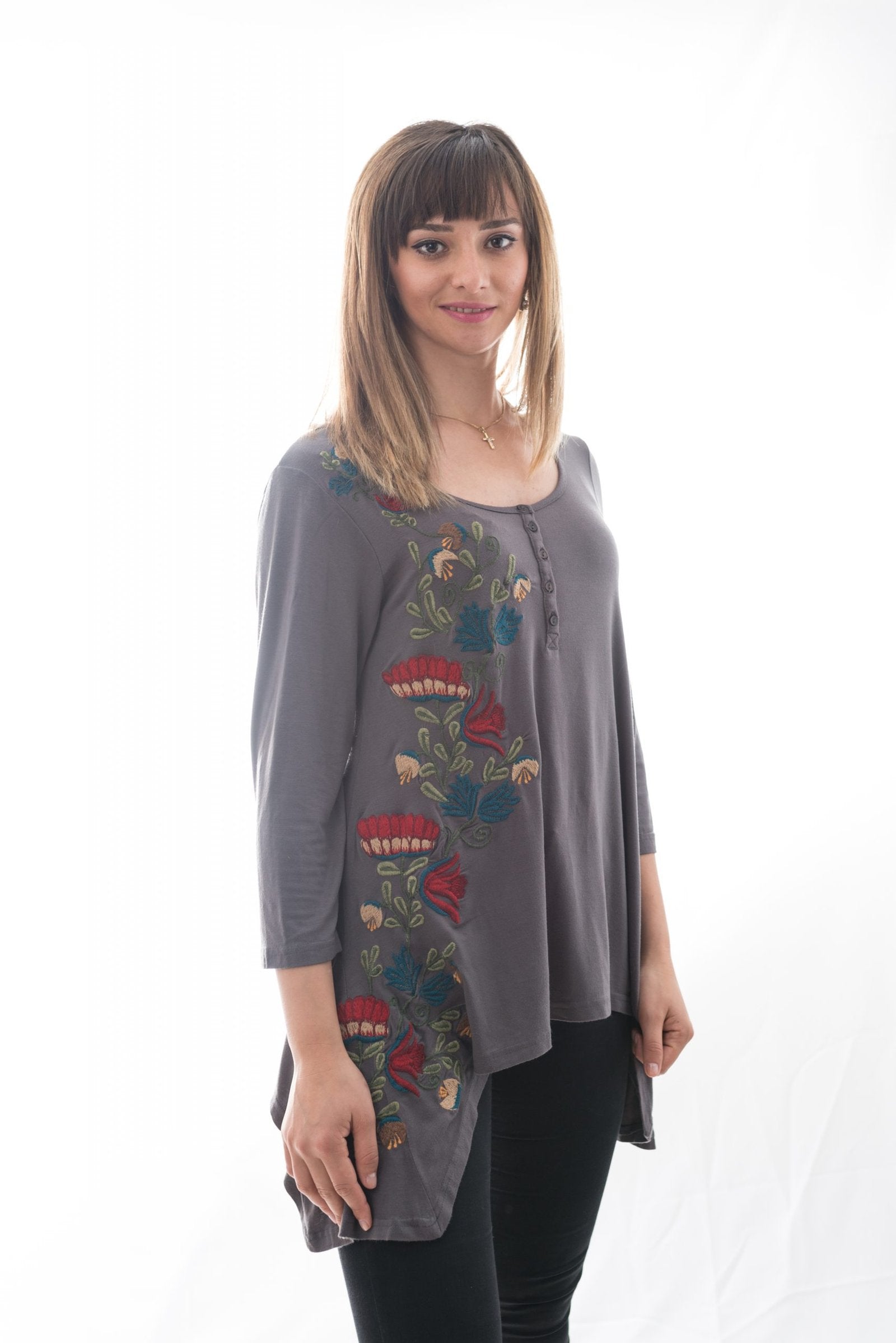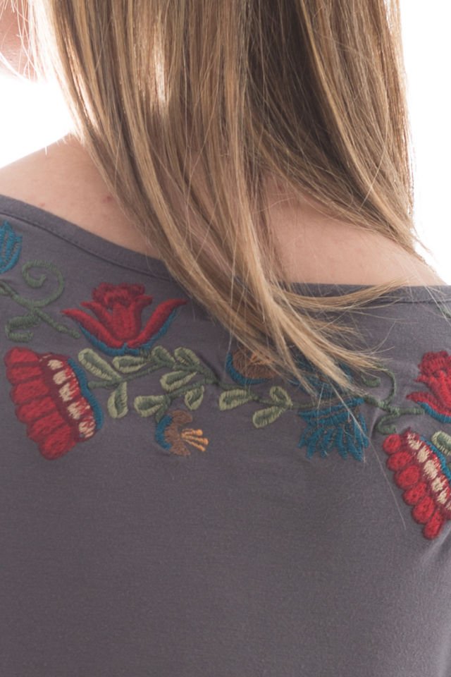 Bluză Gri Cu Broderie Laterala Mărime S-M