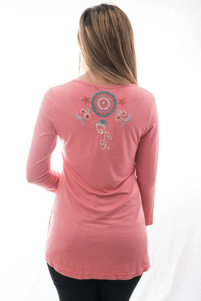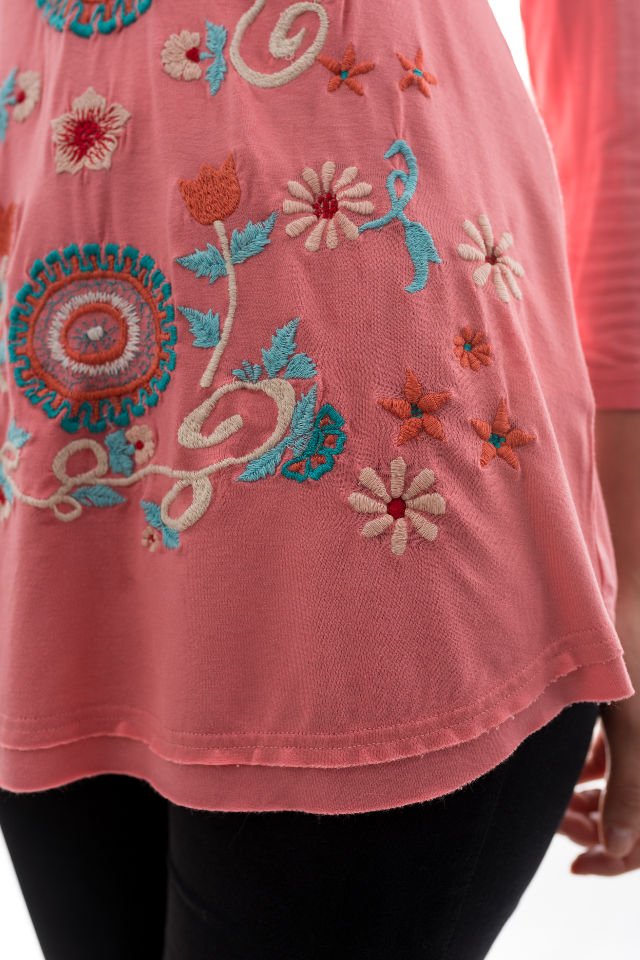 Bluză Roz-Frez Cu Broderie Mărime S-M