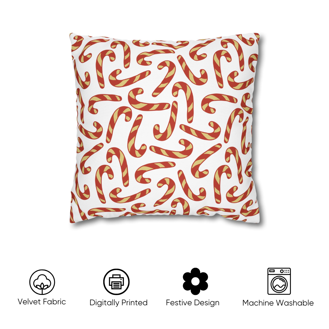 Candy Cane Velvet Chirstmas Cushion Cover