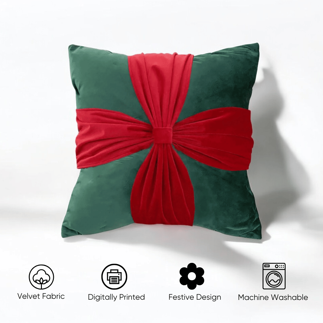 Mistletoe Bow Velvet Christmas Cushion Cover by Lushlyf