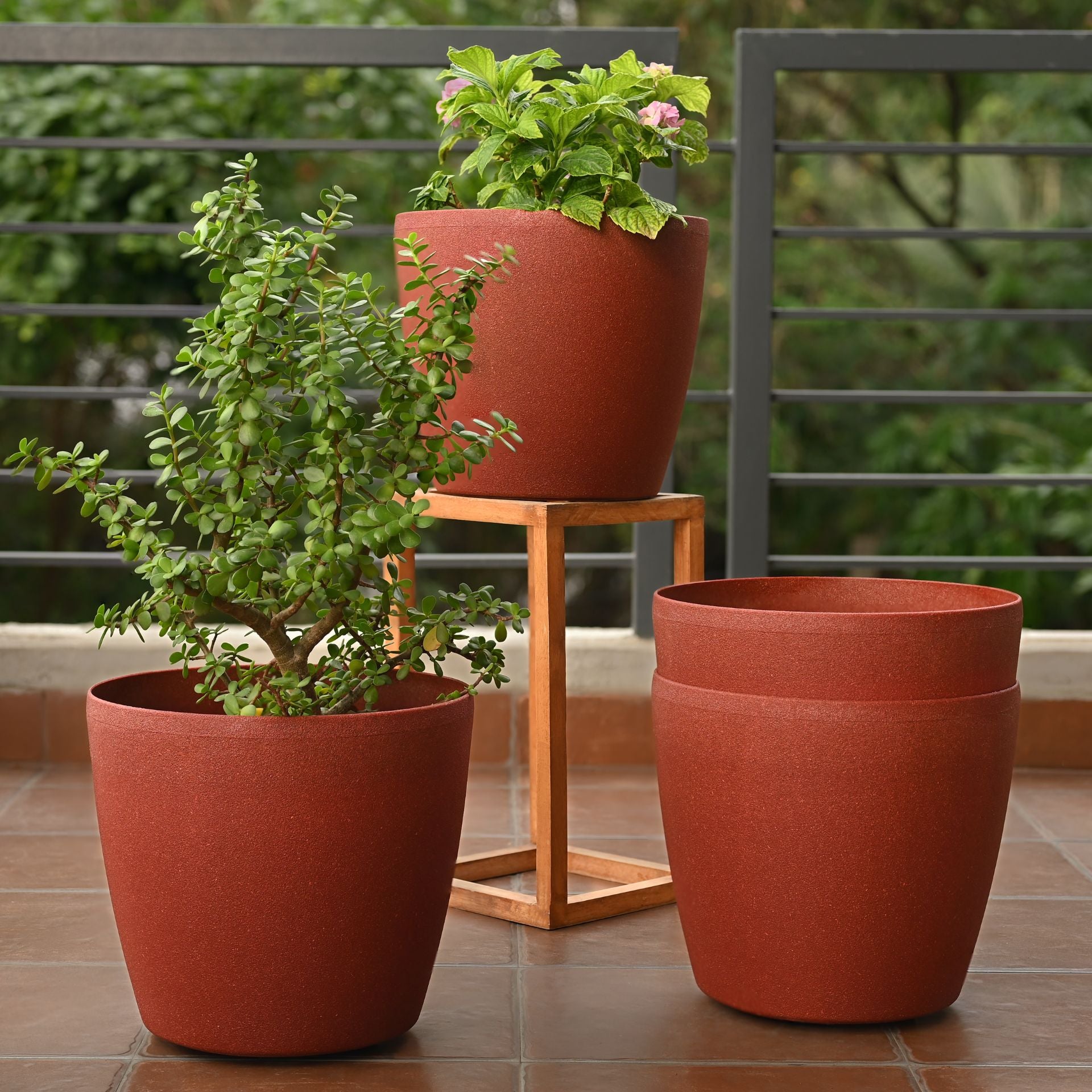 Earth-Friendly Deco Wheeled Planter 14 Inch set of 4 | Self Watering Planters