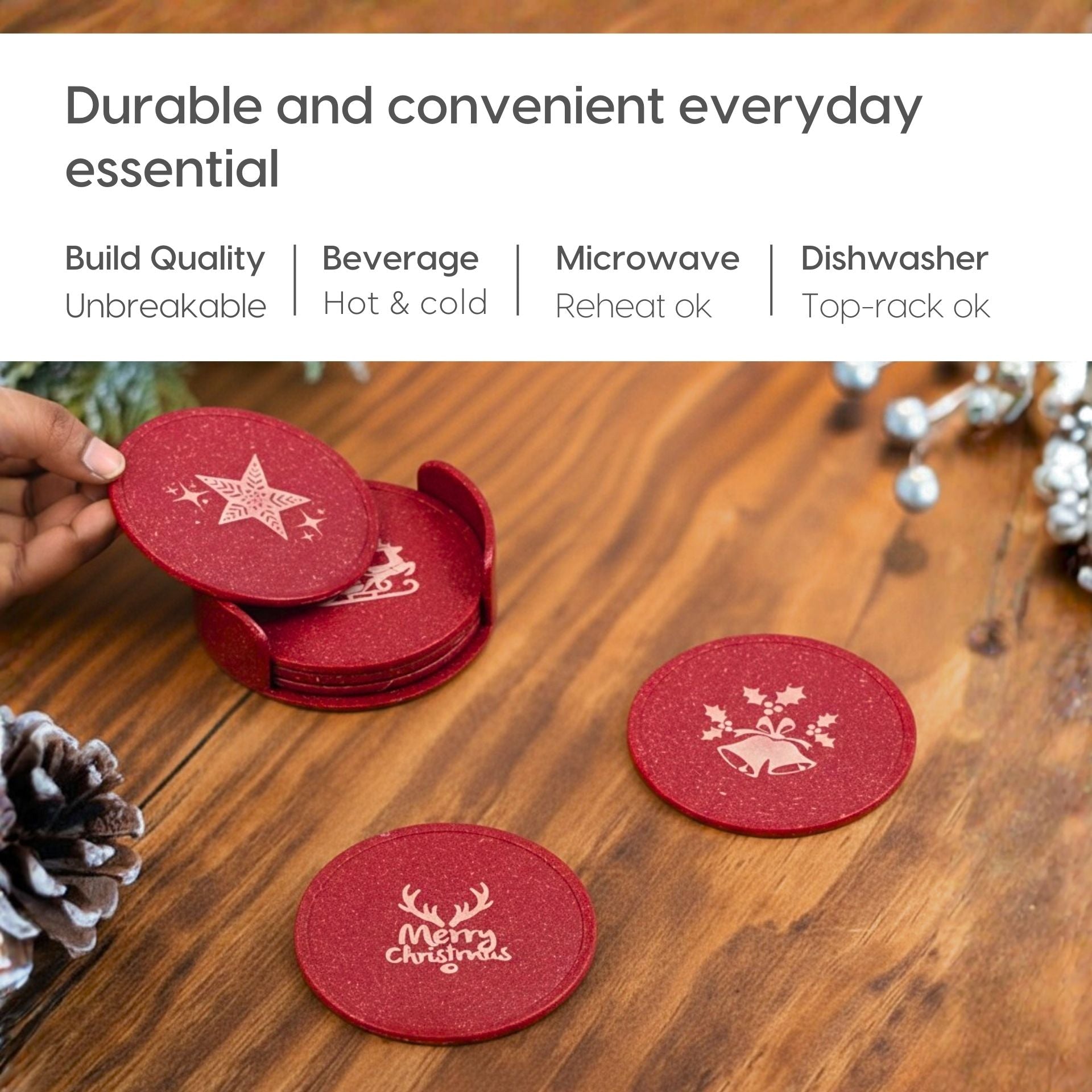 Earth Friendly Dockie Stand & Printed Coasters Set of 6 Christmas Gifting Coasters for Dining Table for Hot Pots