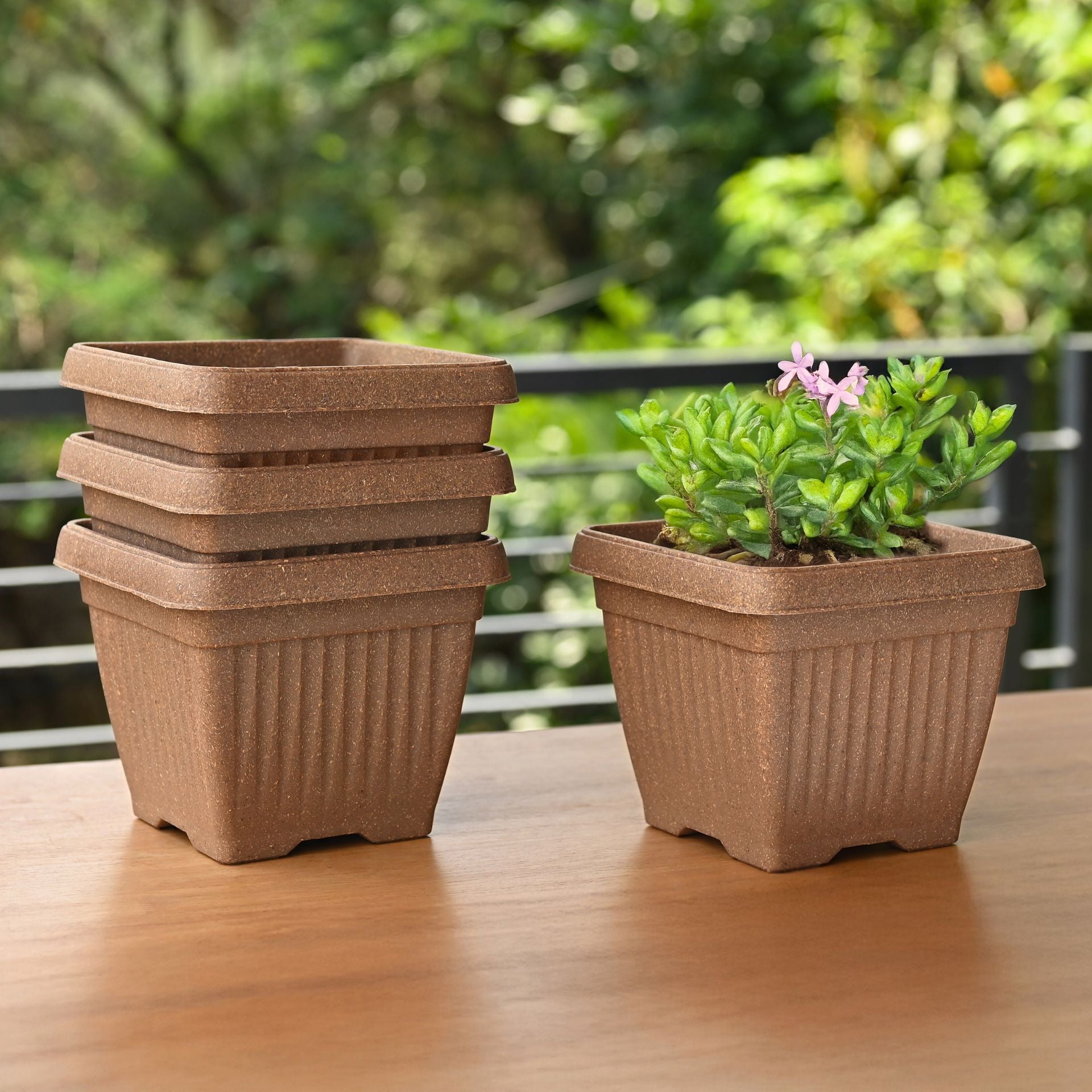 Earth-Friendly Planters Bella Square 8 Inch set of 4 | Bamboo Based Pots and Planters