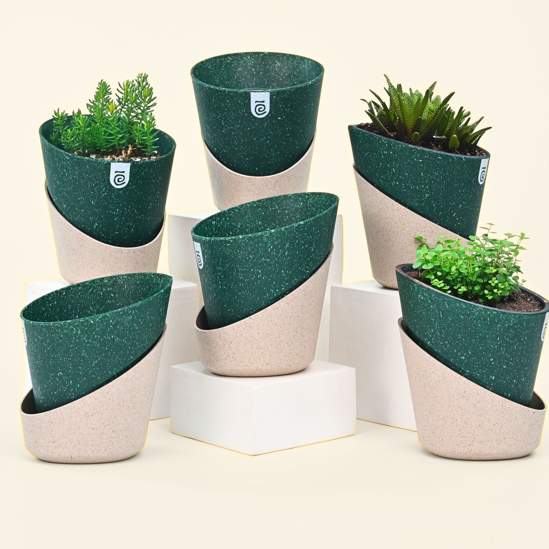 Earth-Friendly Planters EcoBloom 7 Inch set of 6 | Self watering Planters