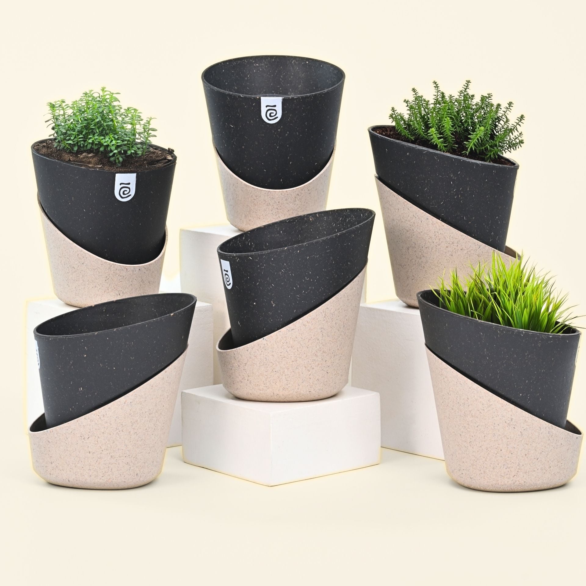 Earth-Friendly Planters EcoBloom 7 Inch set of 6 Self watering Planters Bamboo Based Pots and Planters