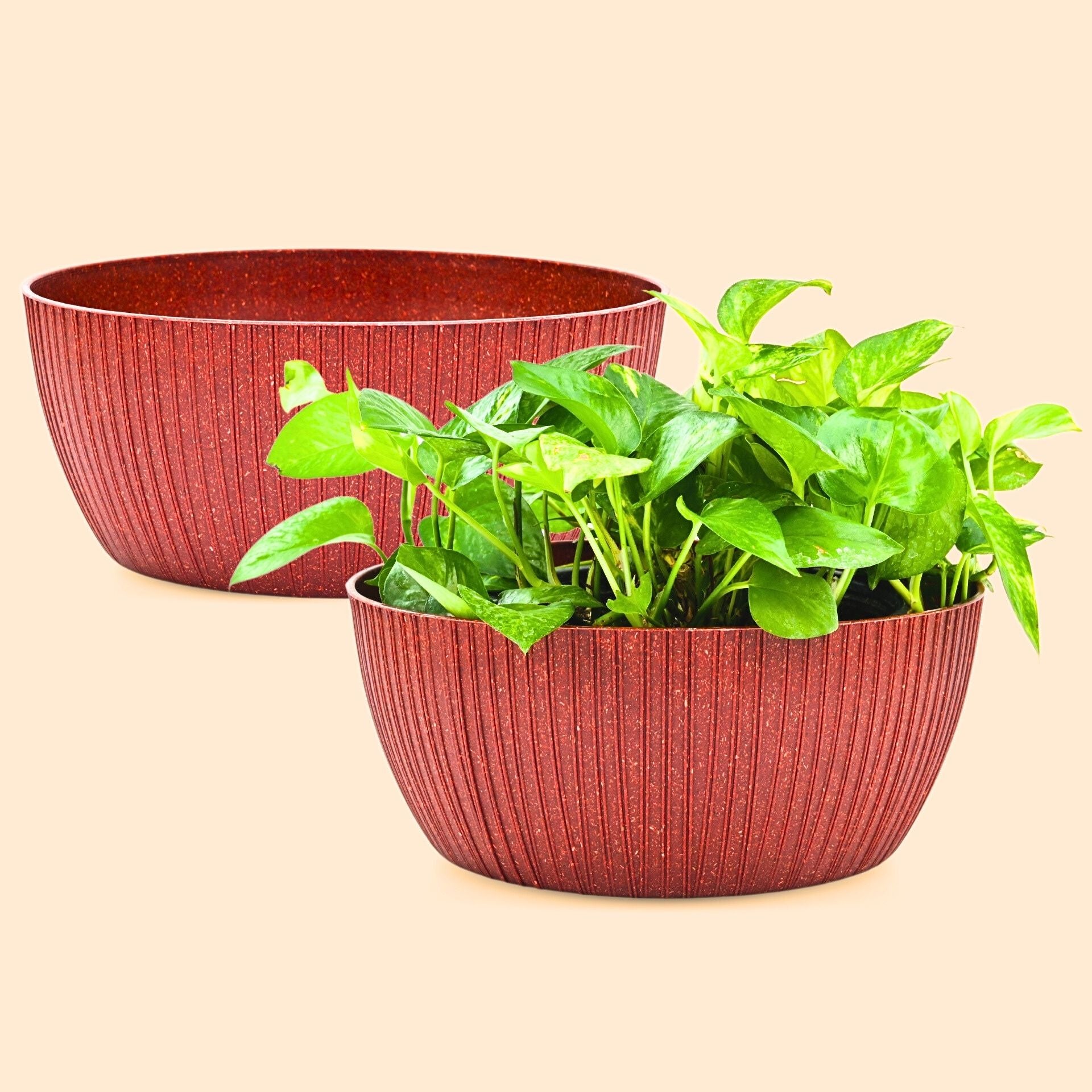 Earth Friendly Planters NatureNest Round 12 Inch set of 2 | Bamboo Based Pots and Planters