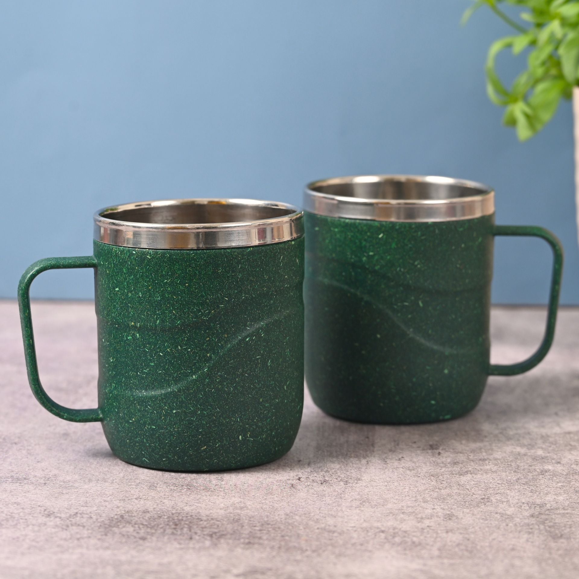 Earth Friendly Wave Stainless Steel Insulated Coffee Mug | Set of 2
