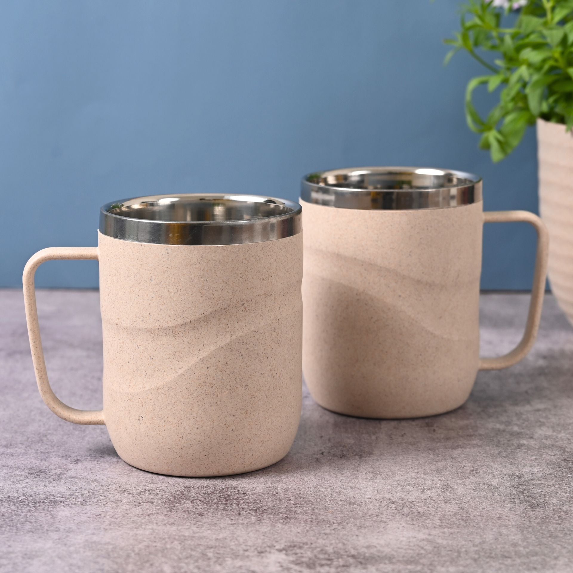 Earth Friendly Wave Stainless Steel Insulated Coffee Mug Set of 2 400 ml