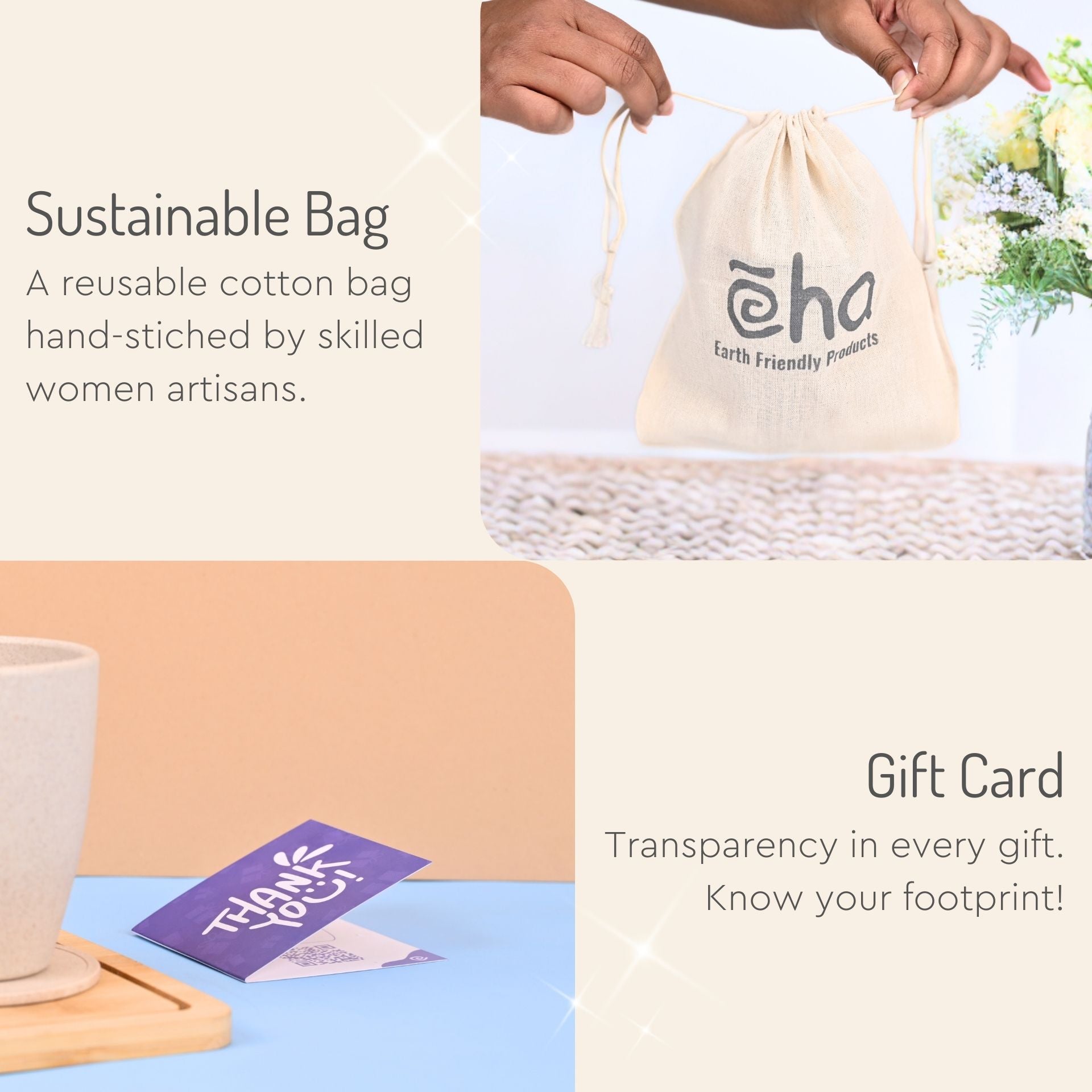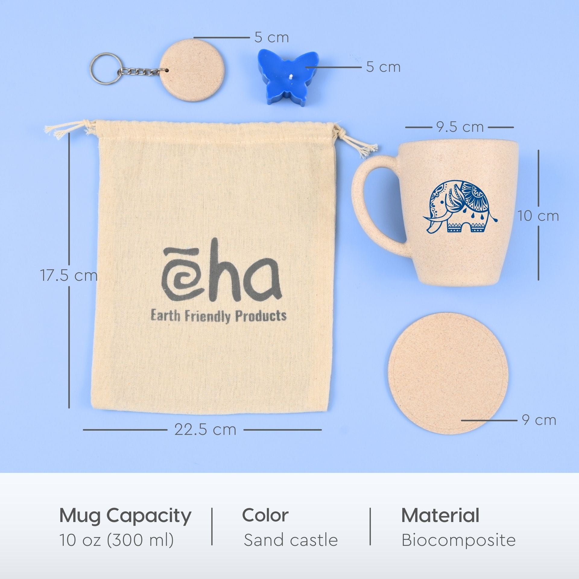 Eha Earth Friendly Diwali Gift Hampers Elephant Printed Mug, Coaster, Key Chain, Candle, Gift Bag, Card Made with Rice Husk