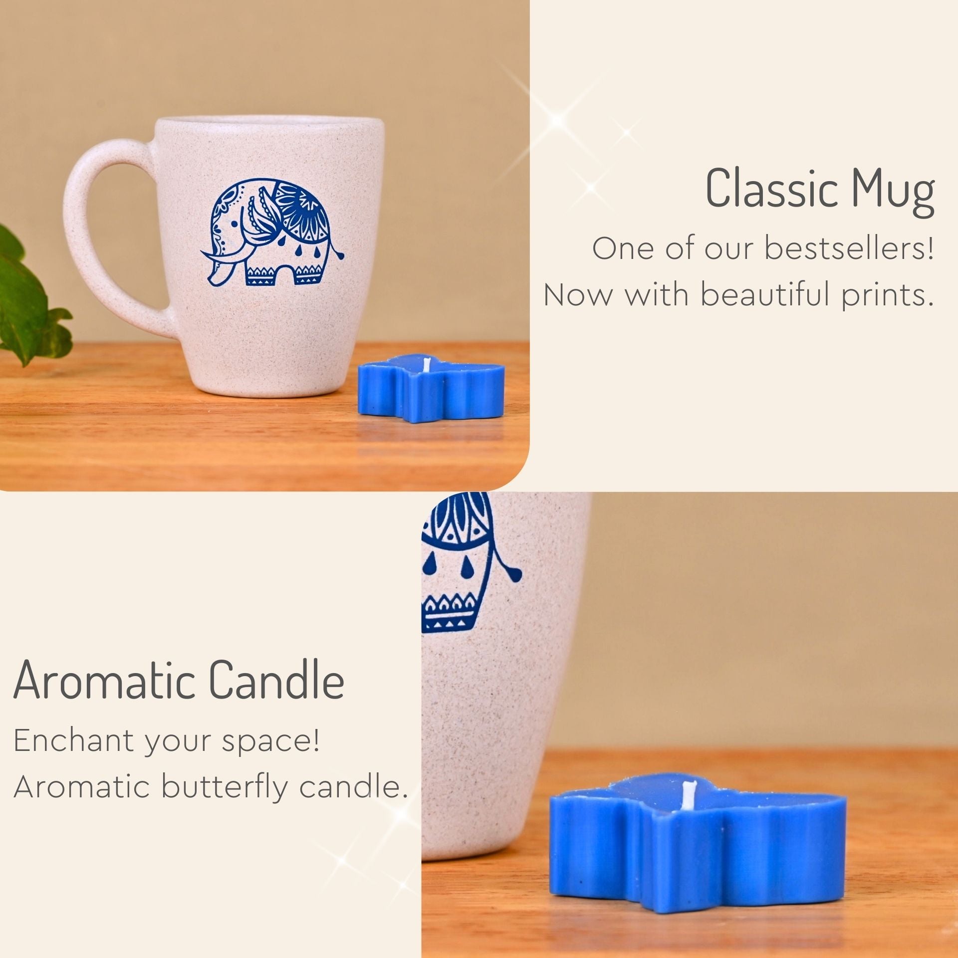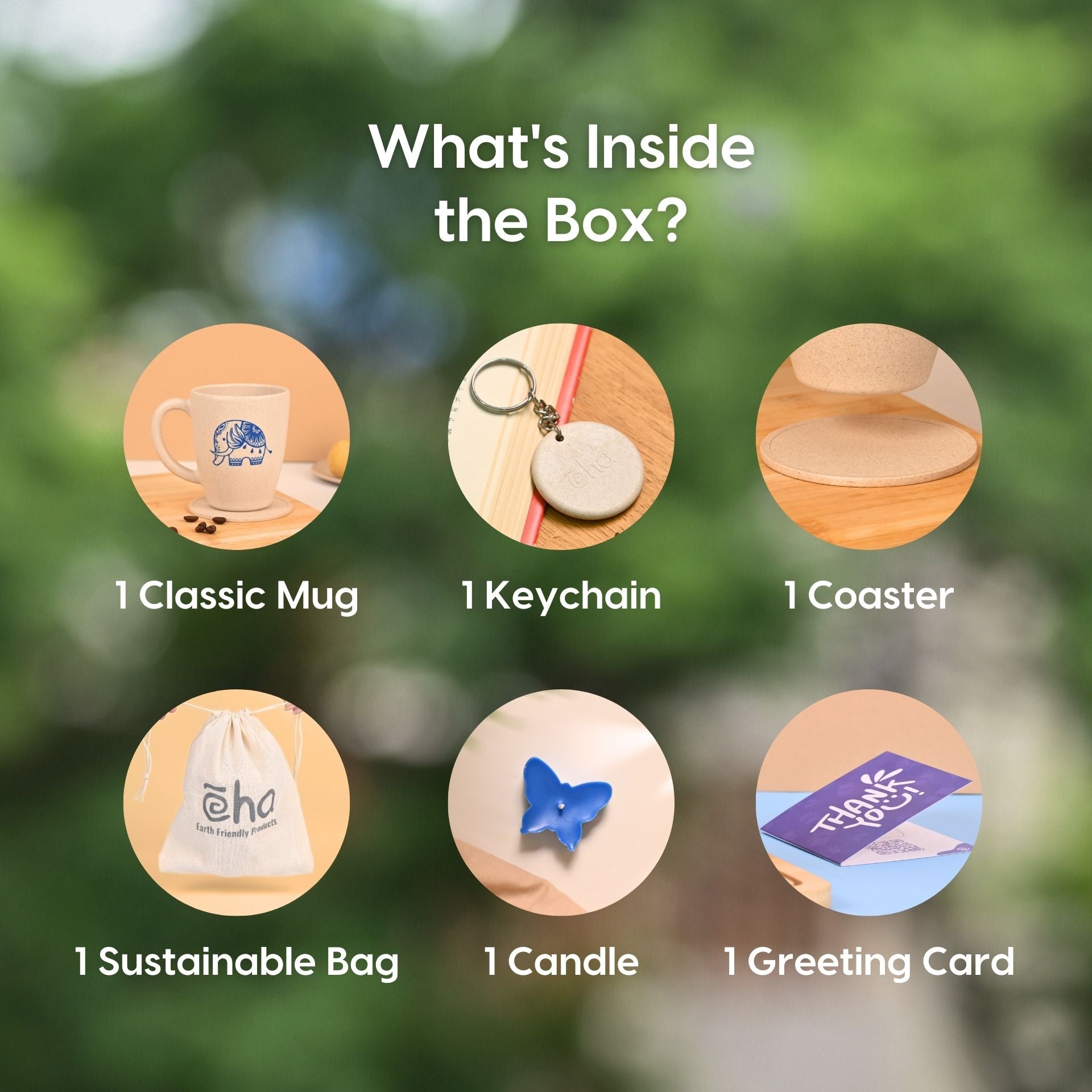 Eha Earth Friendly Diwali Gift Hampers | Elephant Printed Mug, Coaster, Key Chain, Candle, Gift Bag, Card