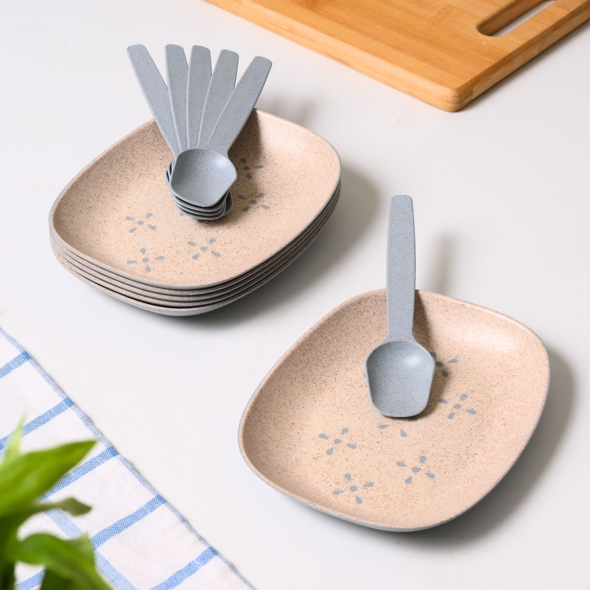 Mini snack plates 6 inch set of 6 | Earth friendly Unbreakable Plates with Spoon