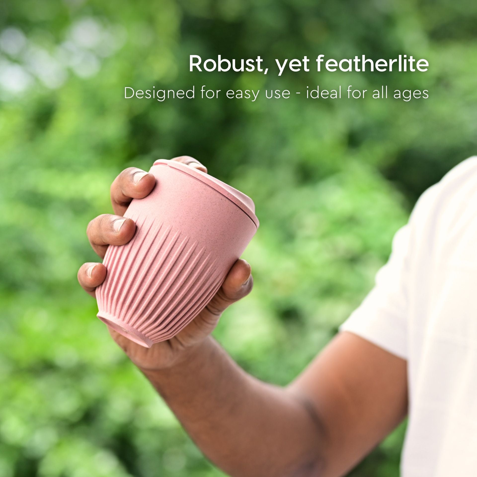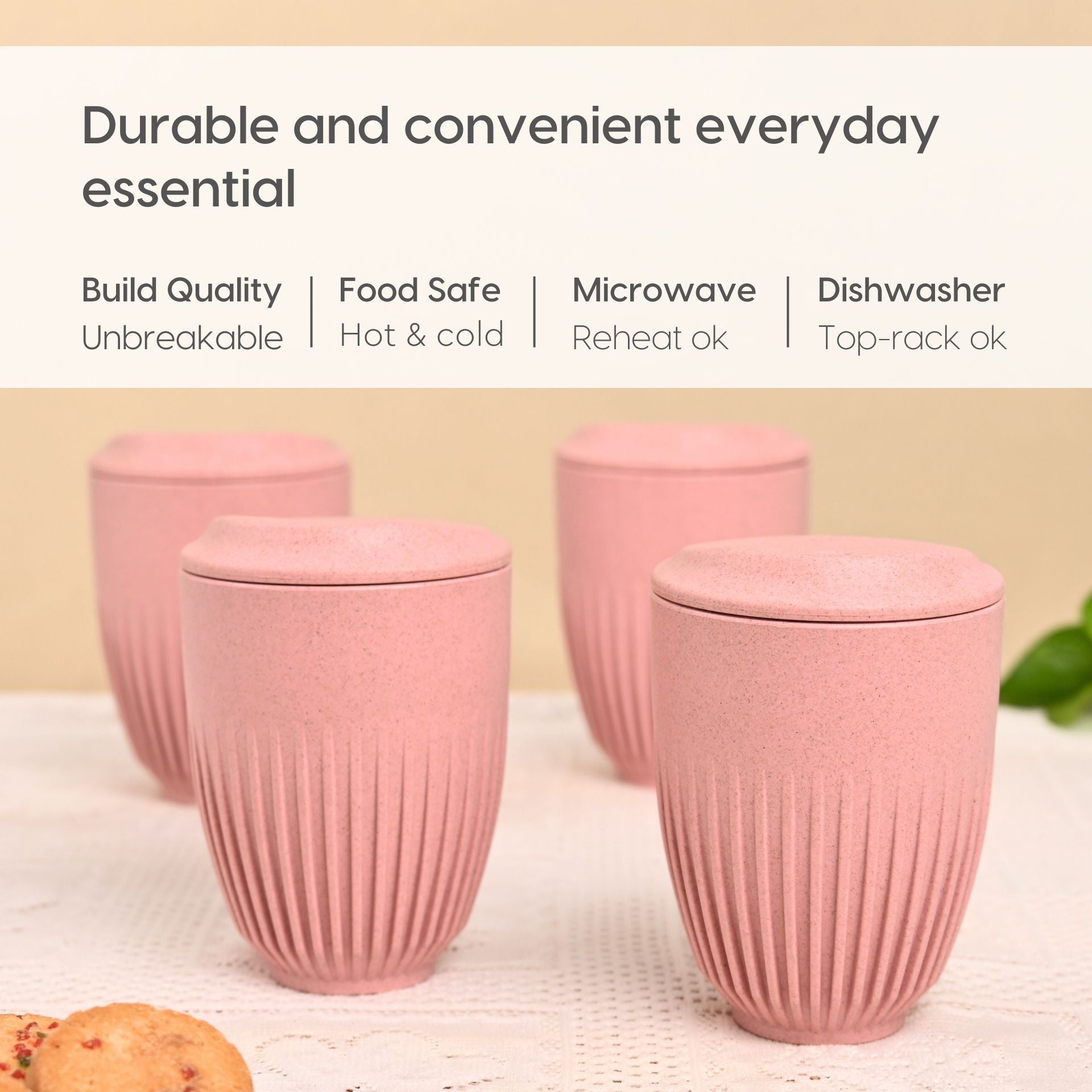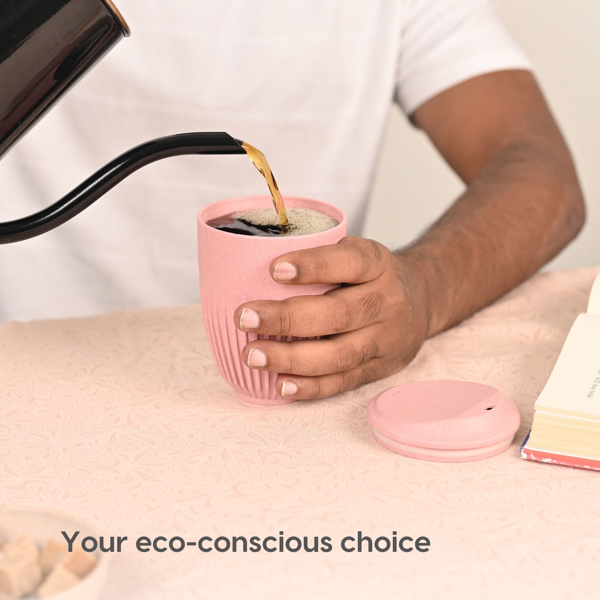 Retro Coffee Mug with Lid – Set of 4 350 ml Made with Rice Husk& Bamboo