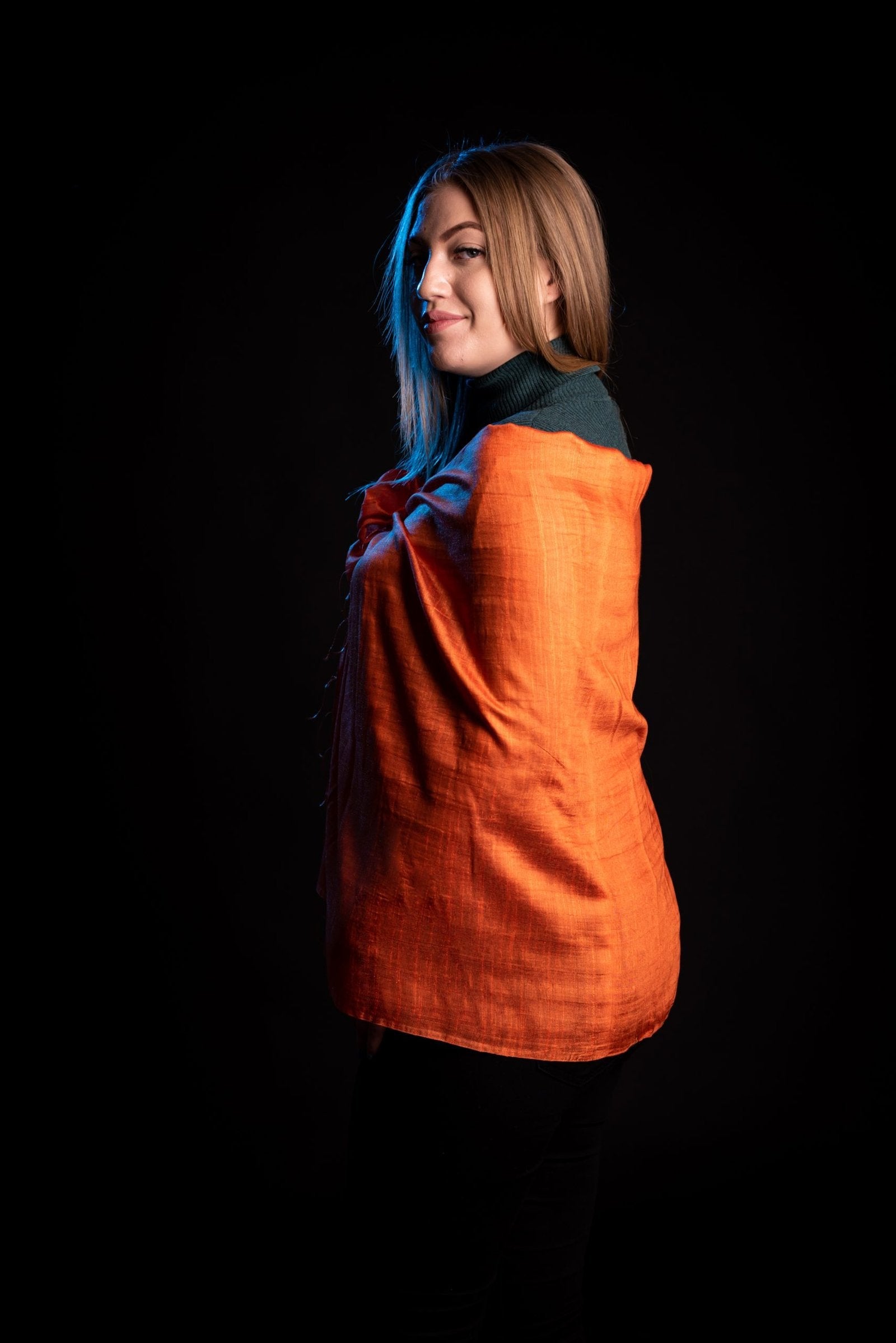 Esarfa Cara, Matase cruda Indian Khadi Portocală