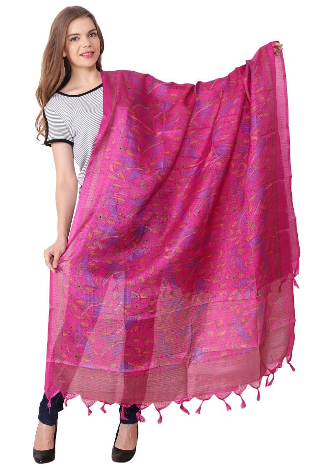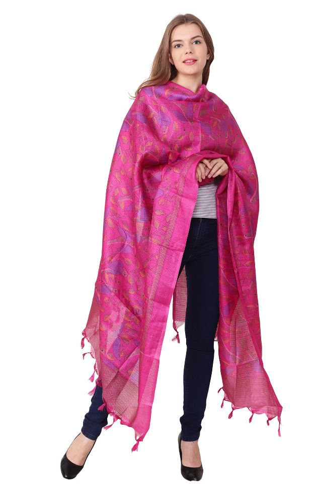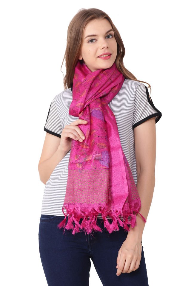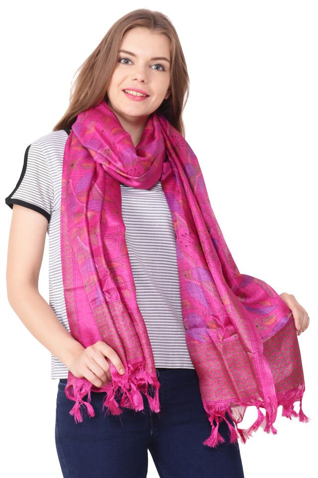 Eșarfă Cara, Mătase naturala tussar, roz siclam, marime universala
