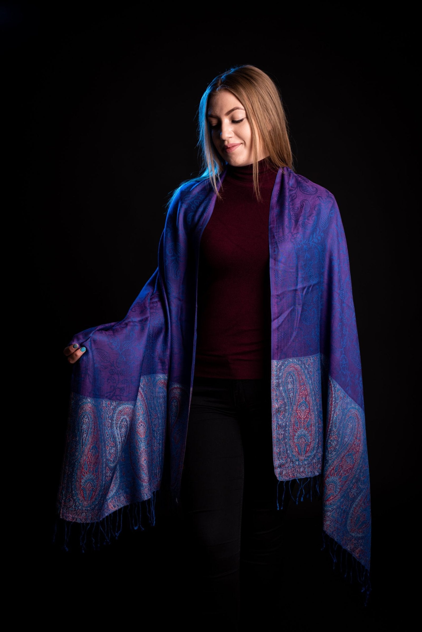 Esarfa Casmir reversibila mov Paisley oriental floral India