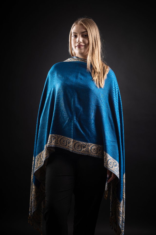 Esarfa Casmir reversibila Paisley India albastru-bej