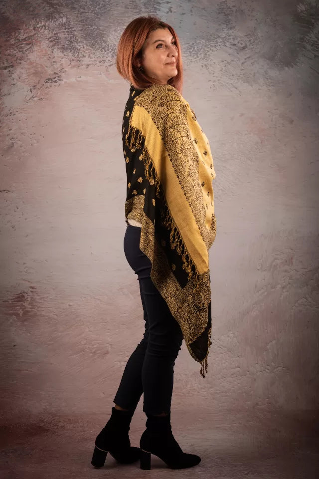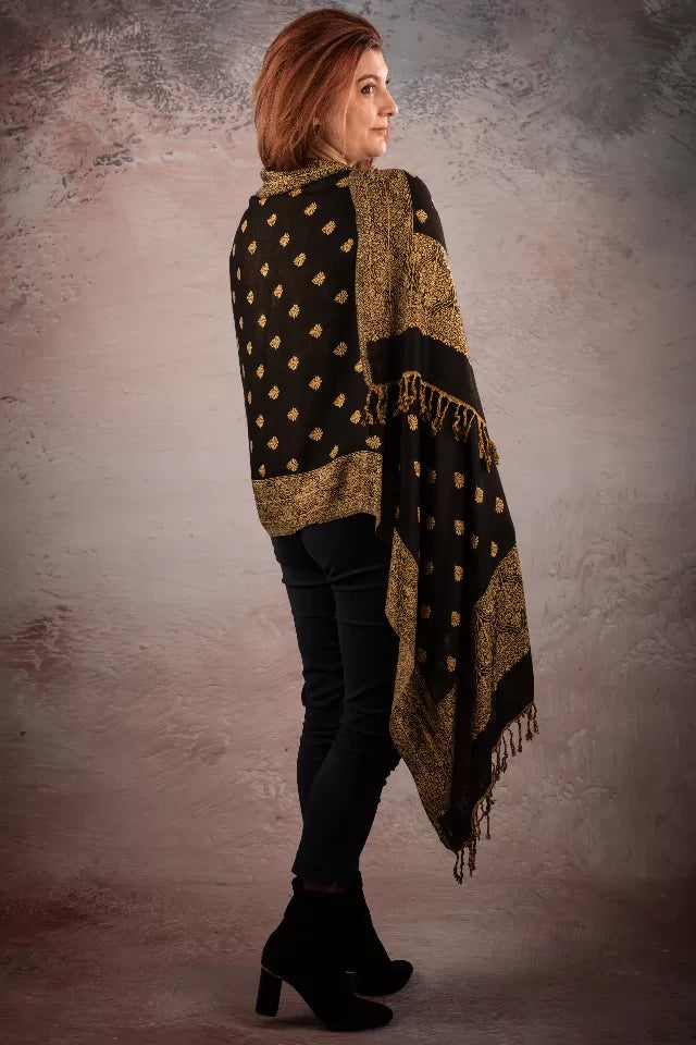 Esarfa Casmir reversibila Paisley India, negru-bej