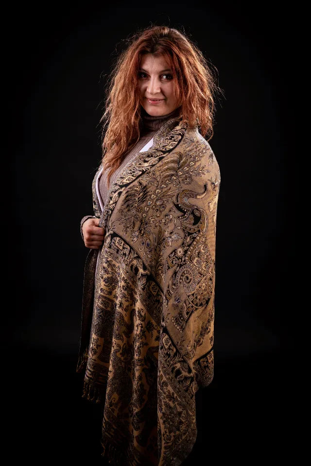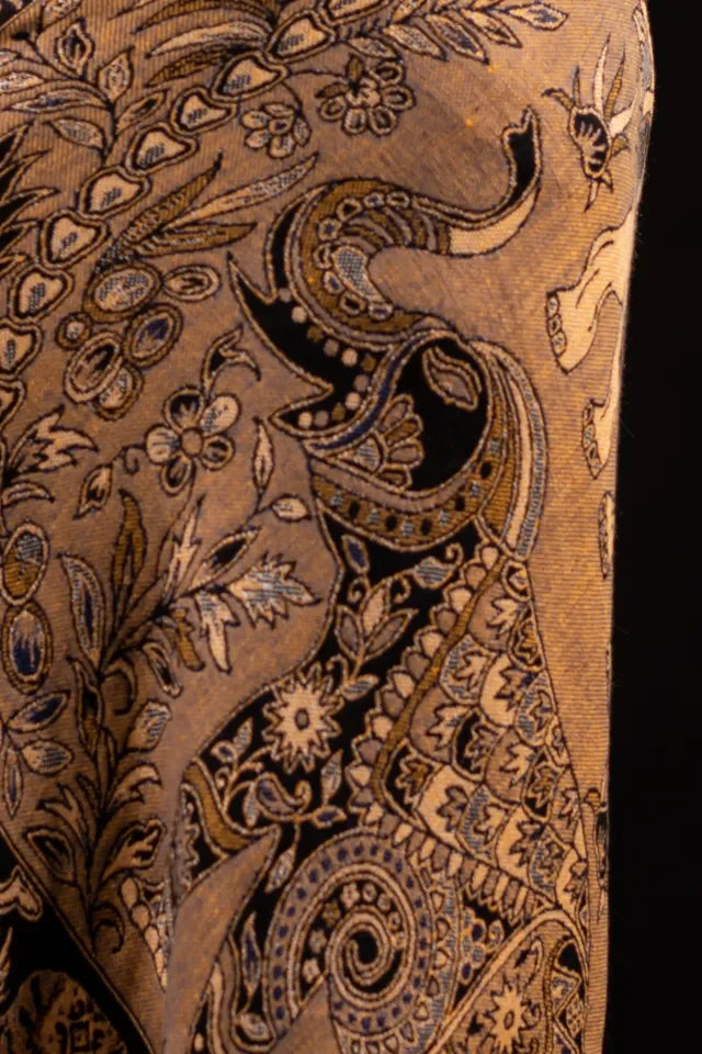 Esarfa de casmir bej-blumarin cu motive traditional indian floral si paisley