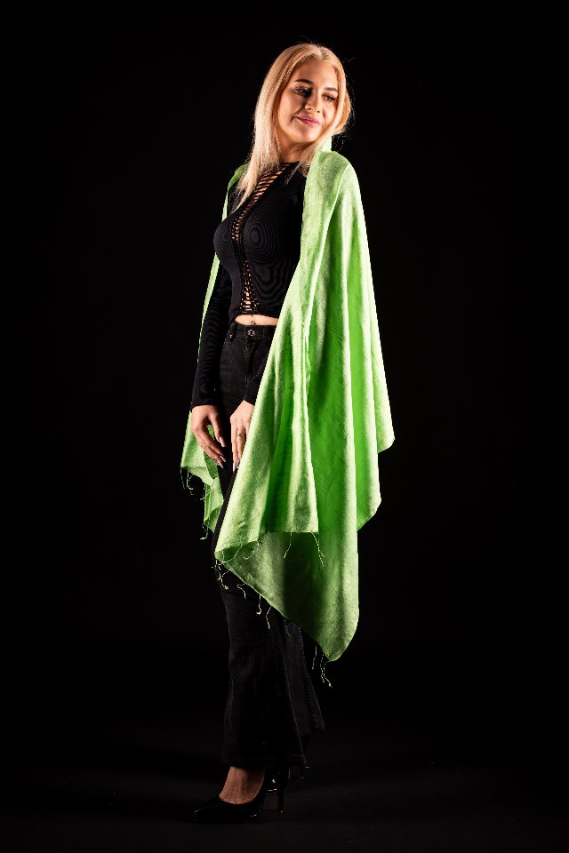 Esarfa matase si bumbac verde fistic