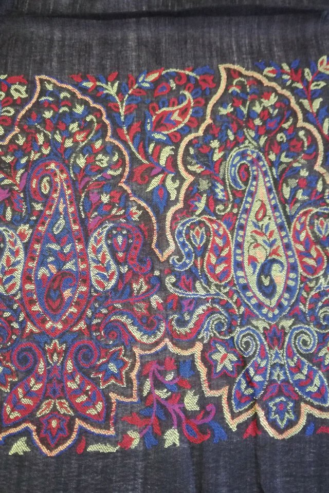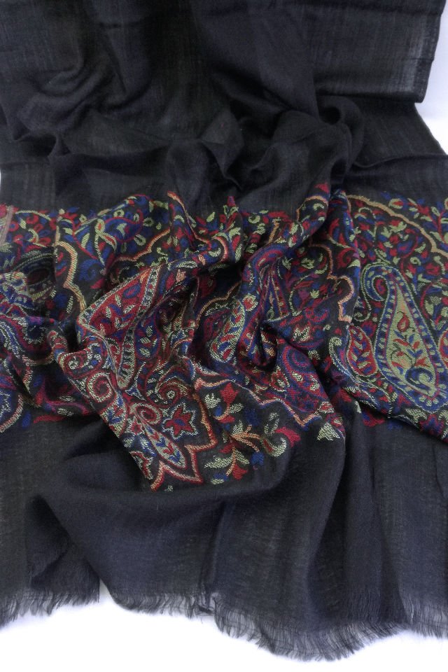 Esarfa-sal din lana pashmina negru cu broderie fina