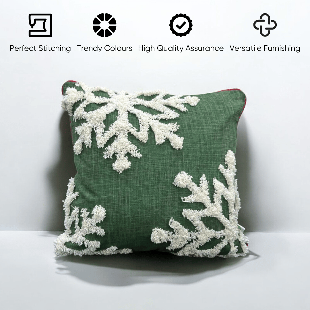 Evergreen Snowflake Tufted Christmas Cushion Cover