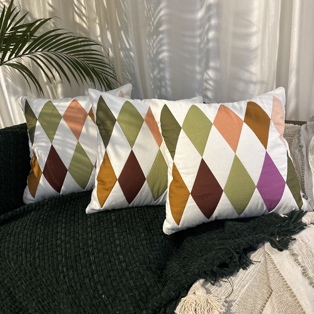 Festive Diamonds Patchwork Cushion Cover – Jewel Tones
