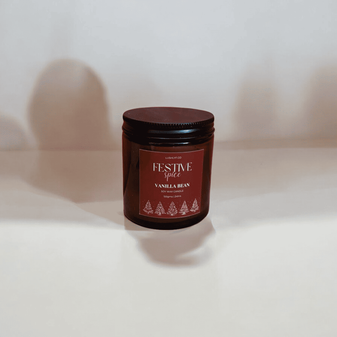 Festive Spice Vanilla Bean Glass Jar Soy Wax Candle