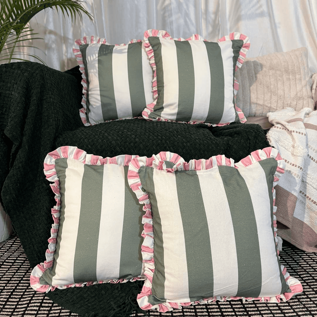 Garden Gelato Ruffle Cushion Cover – Olive & Pink