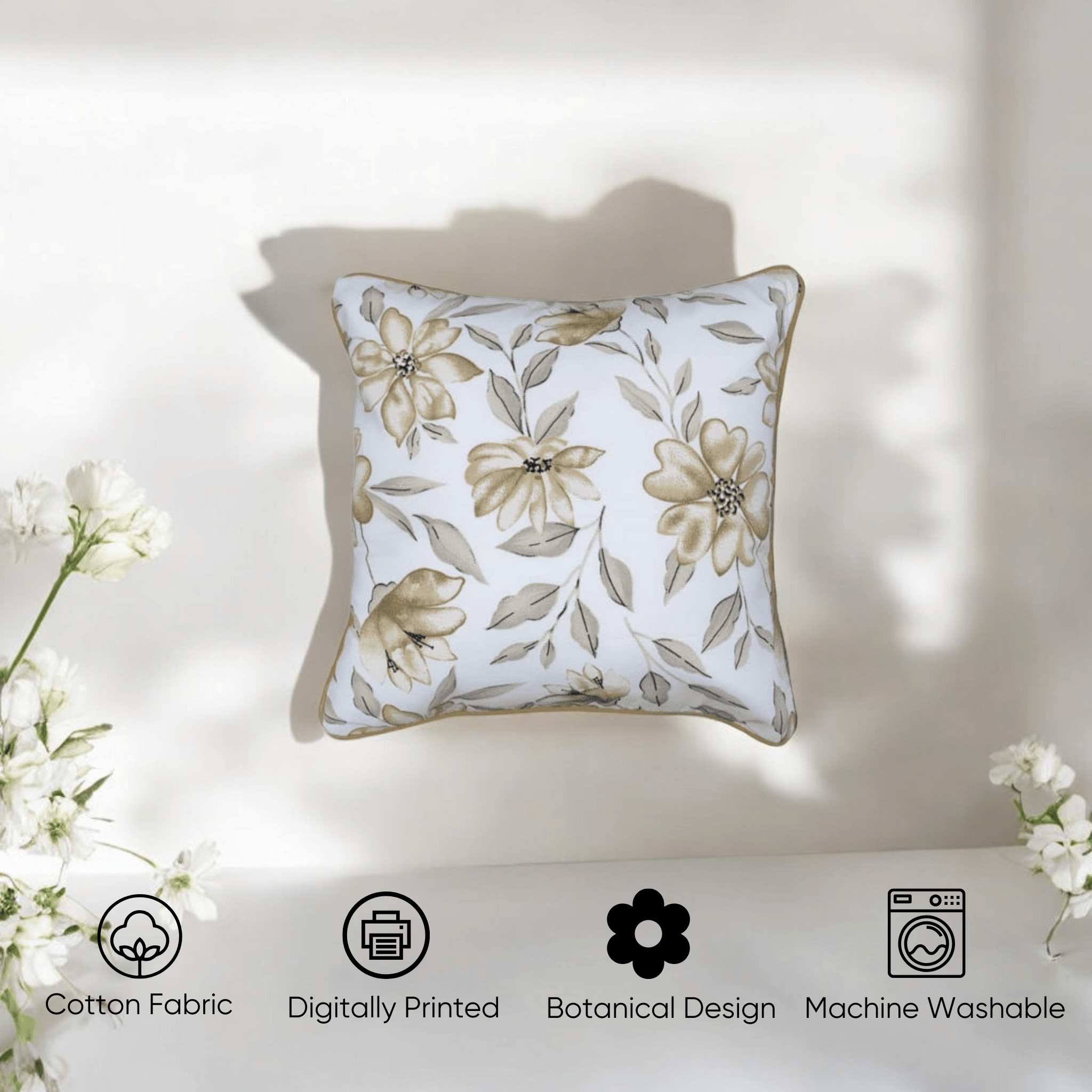 Golden Bloom Cushion Cover - Set of 5