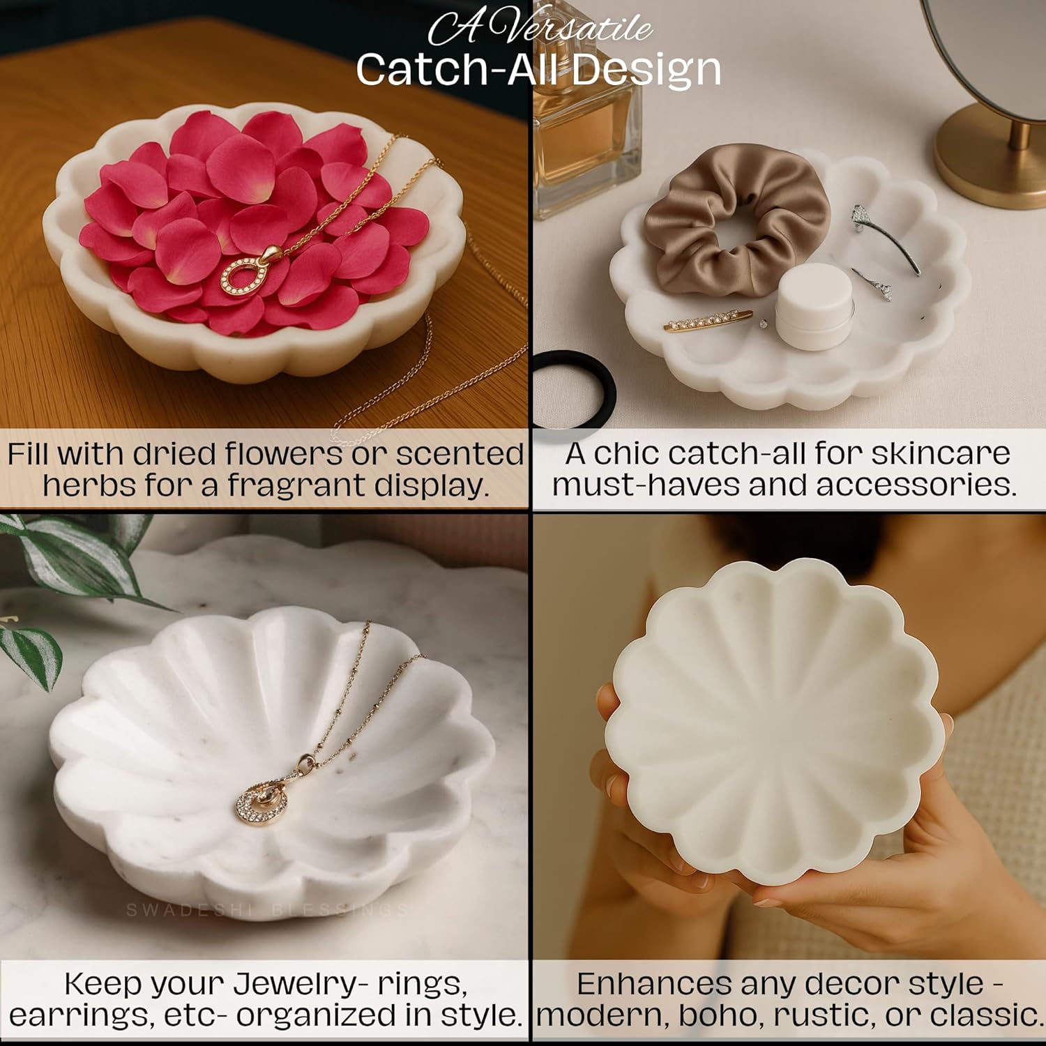 Handcrafted Marble Jewelry Tray, Decorative Trinket Dish for Rings Earrings Necklace Bracelet, Key Bowl, Ideal Gift for Mother Sister Daughter Friends, Birthday Wedding Christmas 5 inches