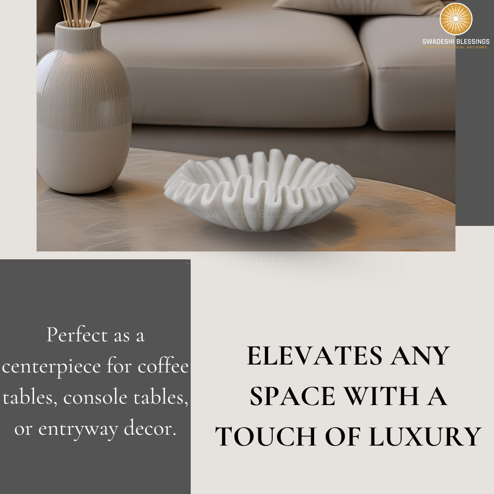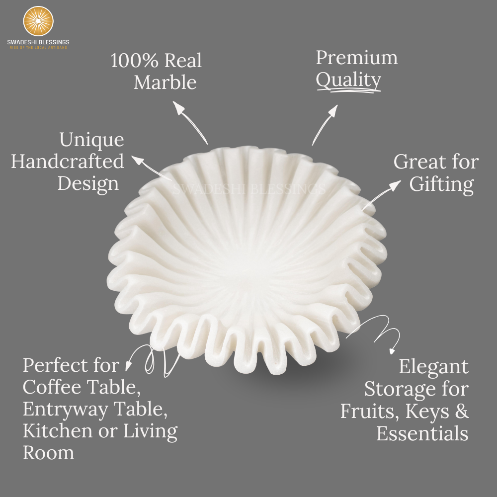 HandCrafted Marble Ruffle Bowl, Large Decorative Bowl for Home Decor, Key Bowl for Entryway Table, Scalloped Bowls for Dining Table Centerpiece Decor, Catch All Bowls, 9"