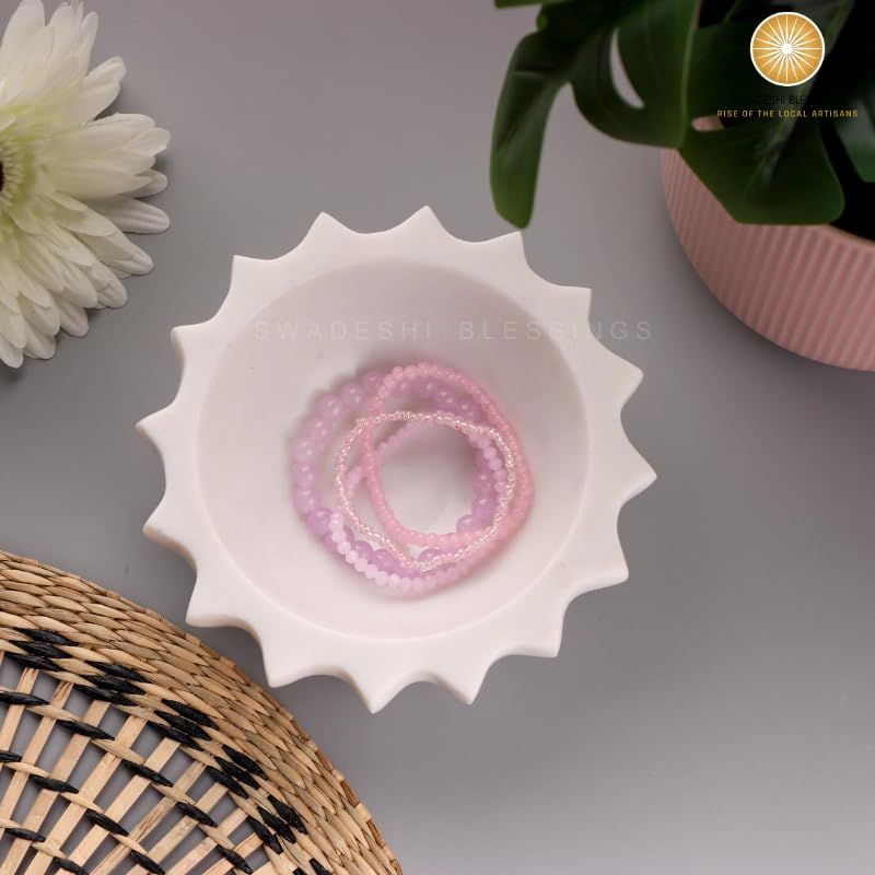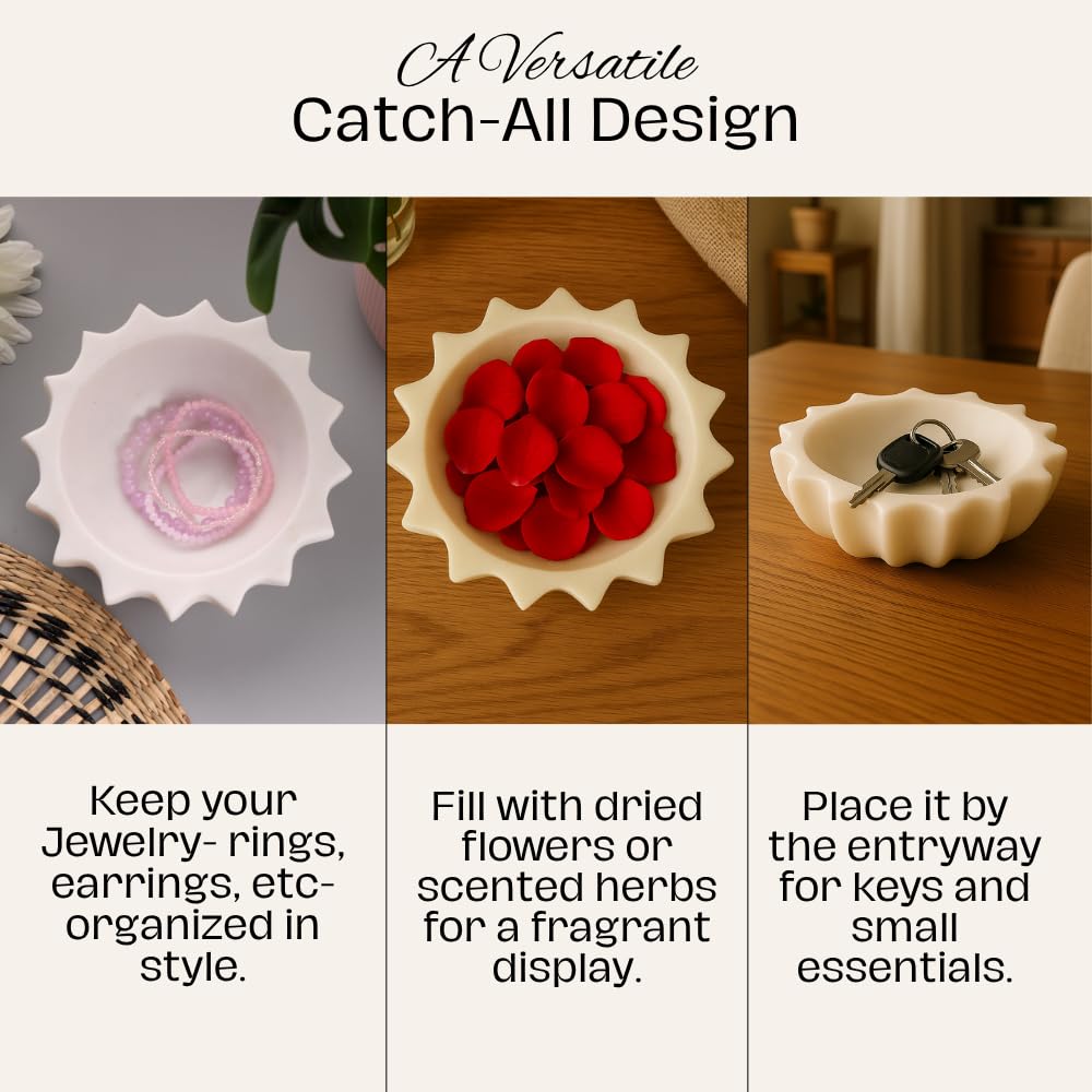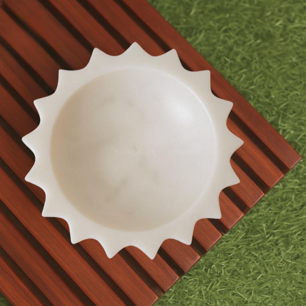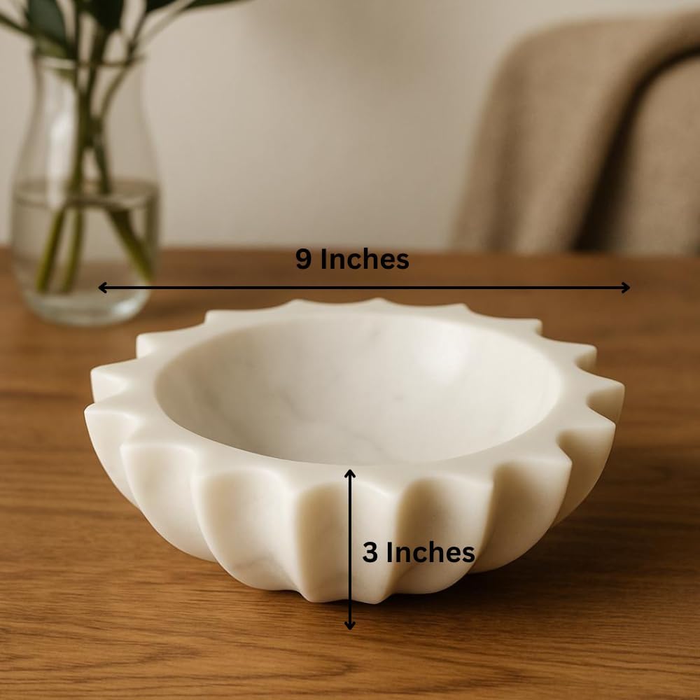 HandCrafted White Marble Decorative Bowl | Ruffle Bowl for Home Decor | Scalloped Bowl | Fluted Bowl | Organic Modern Home Decor Bowl