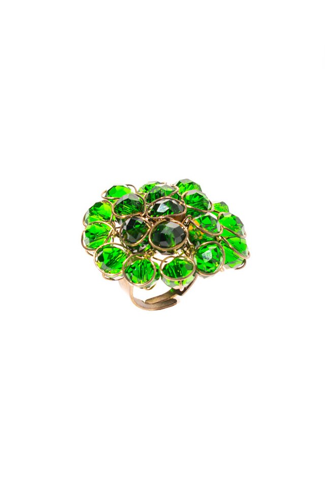 Inel lucrat manual cu pietre verzi