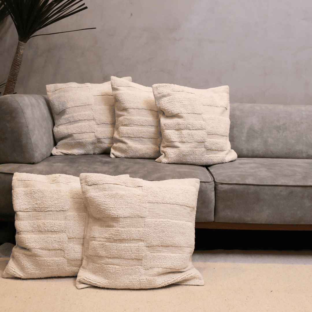 Ivory Textured Tufted Cushion Cover