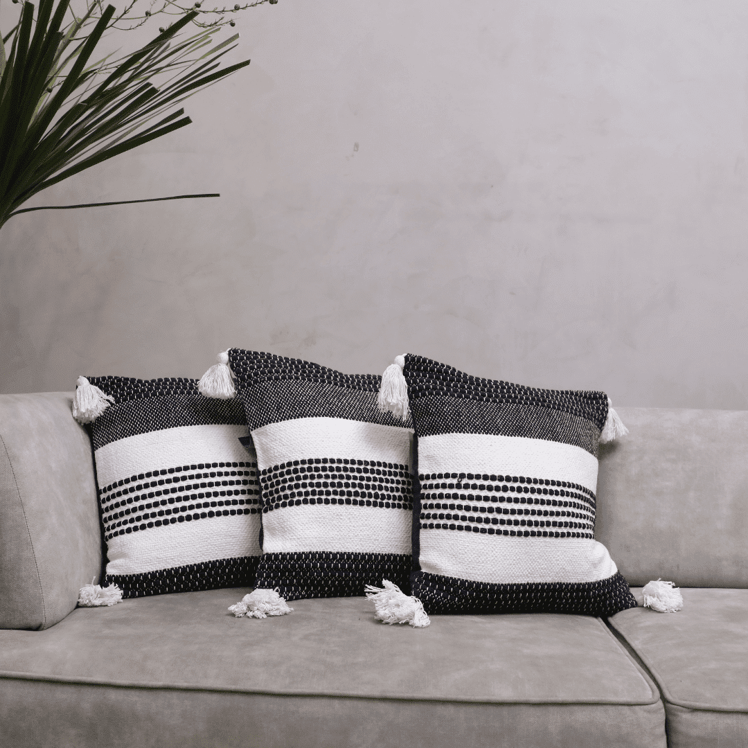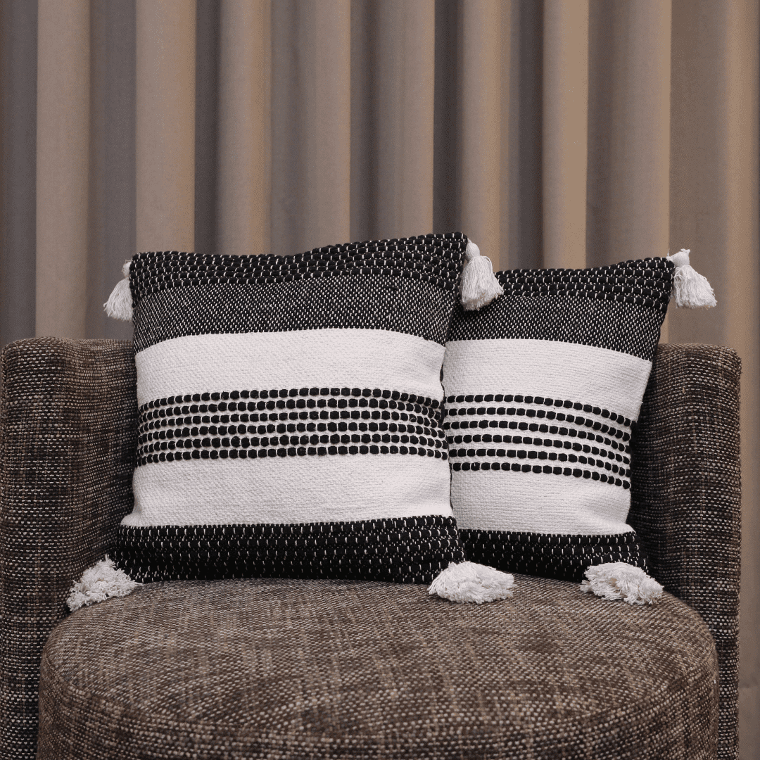 Monochrome Stripes Luxe Tufted Cushion Cover
