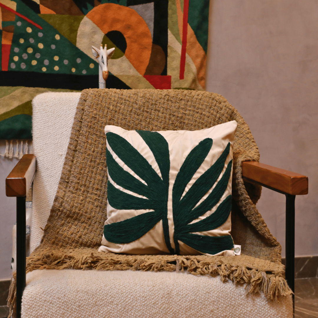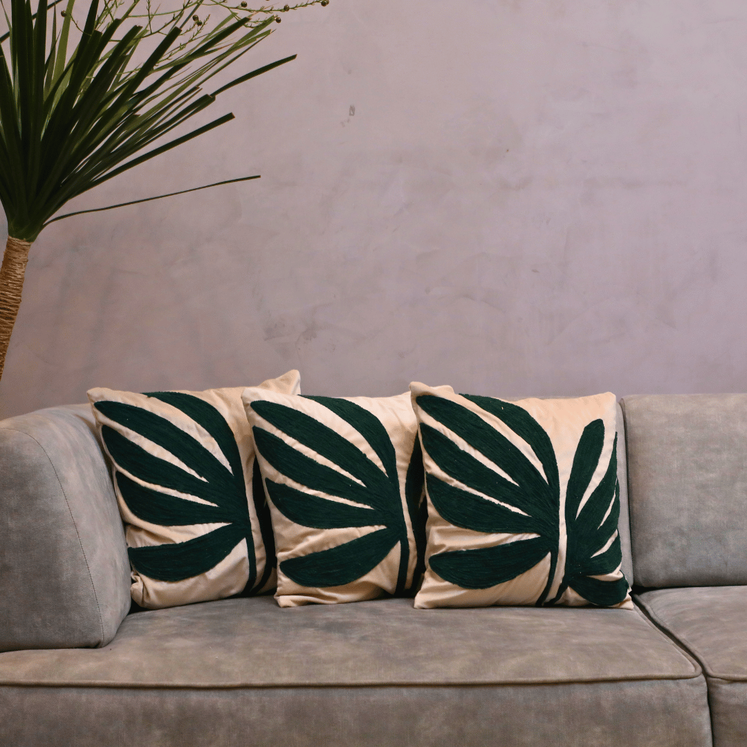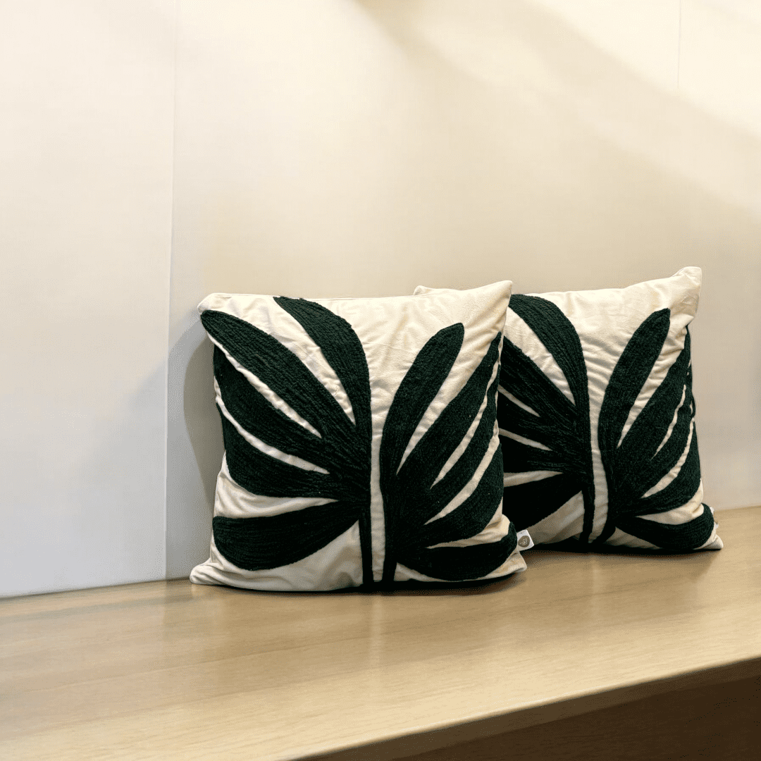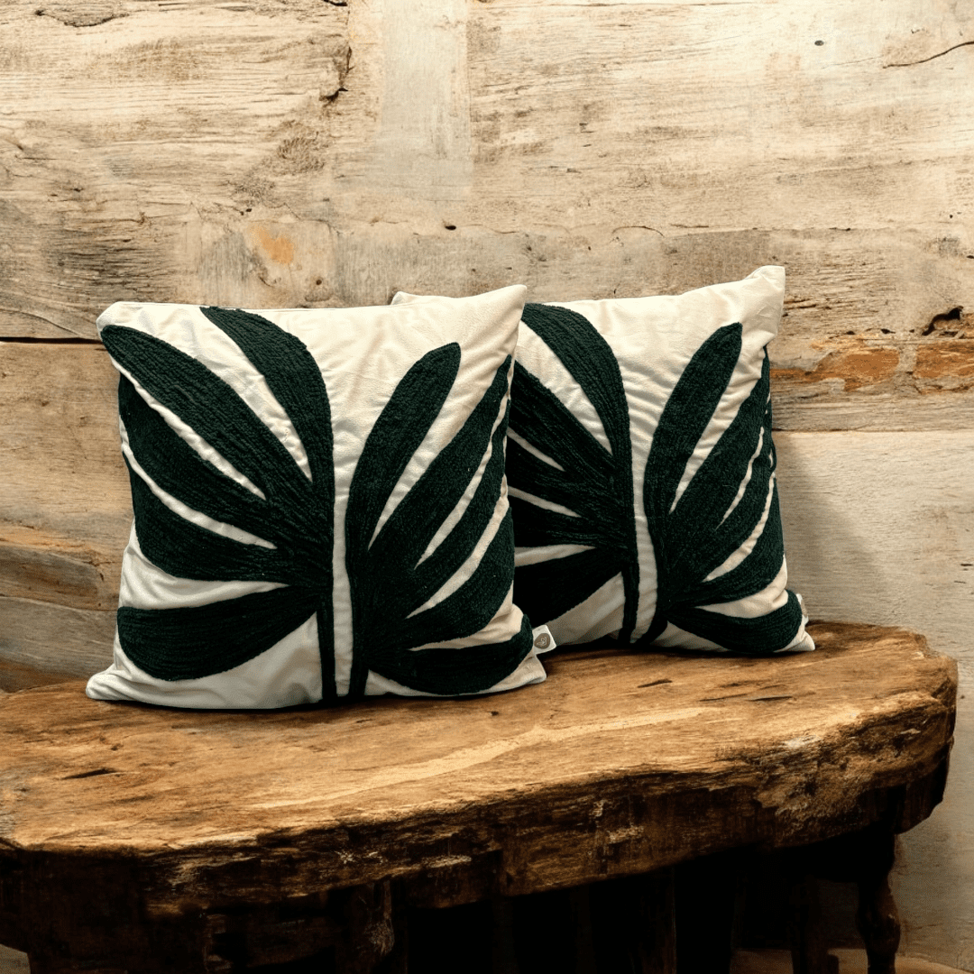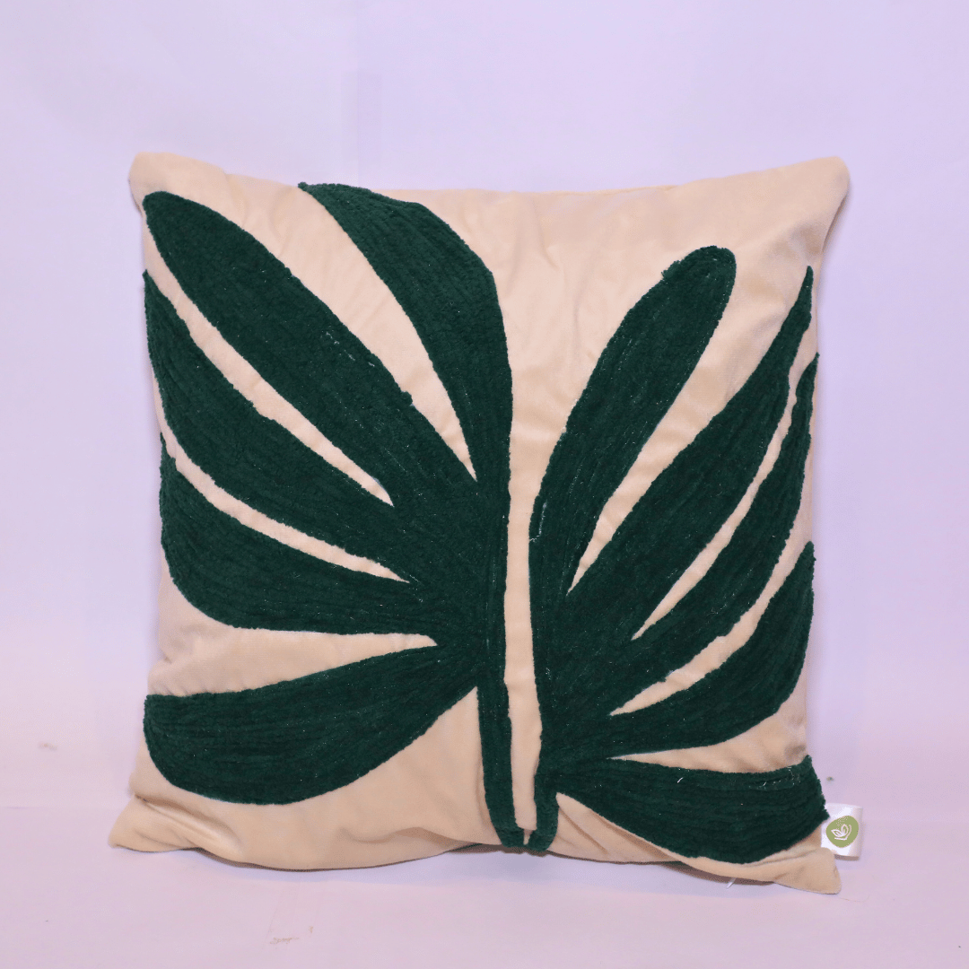 Palm Grandeur Embroidered Tufted Cushion Cover