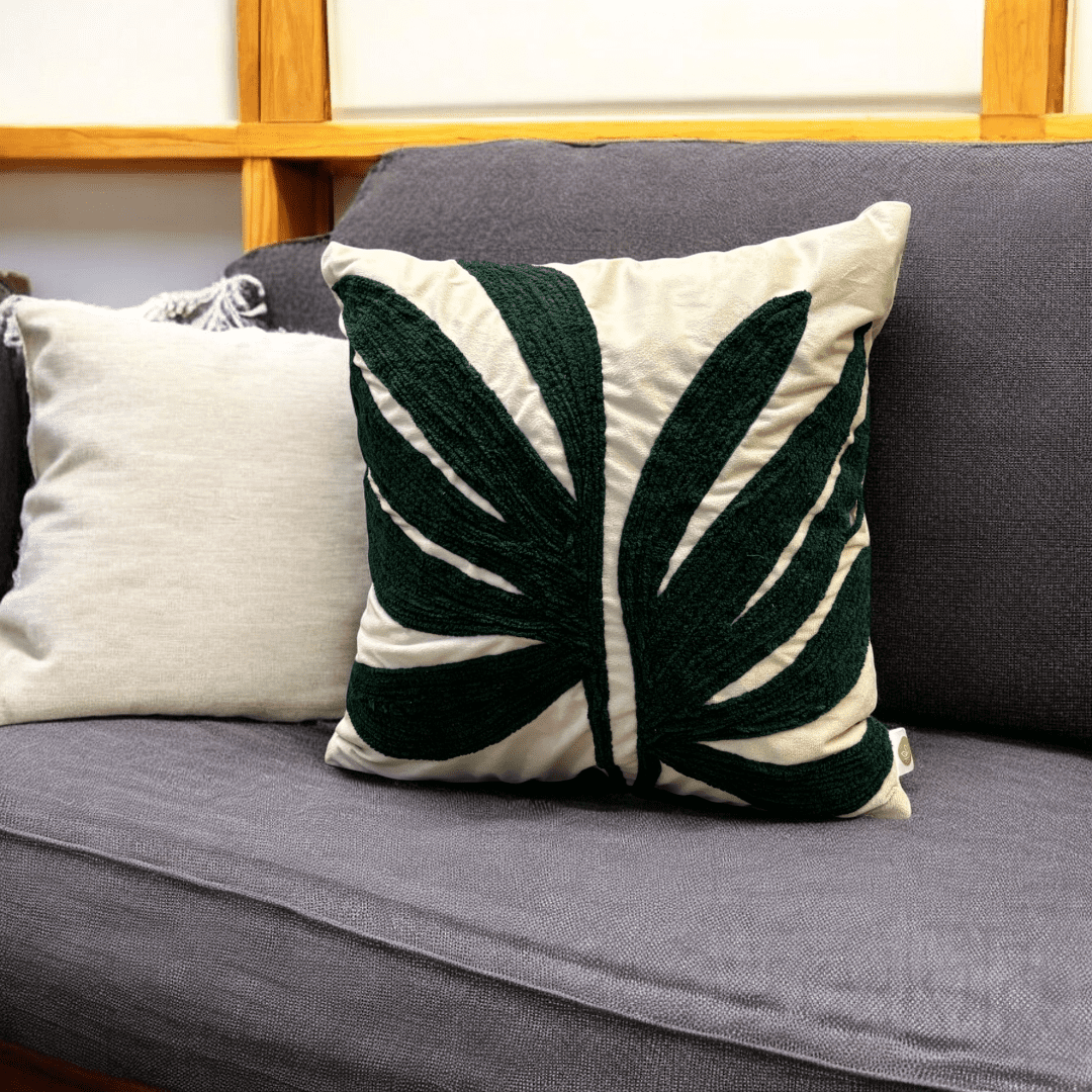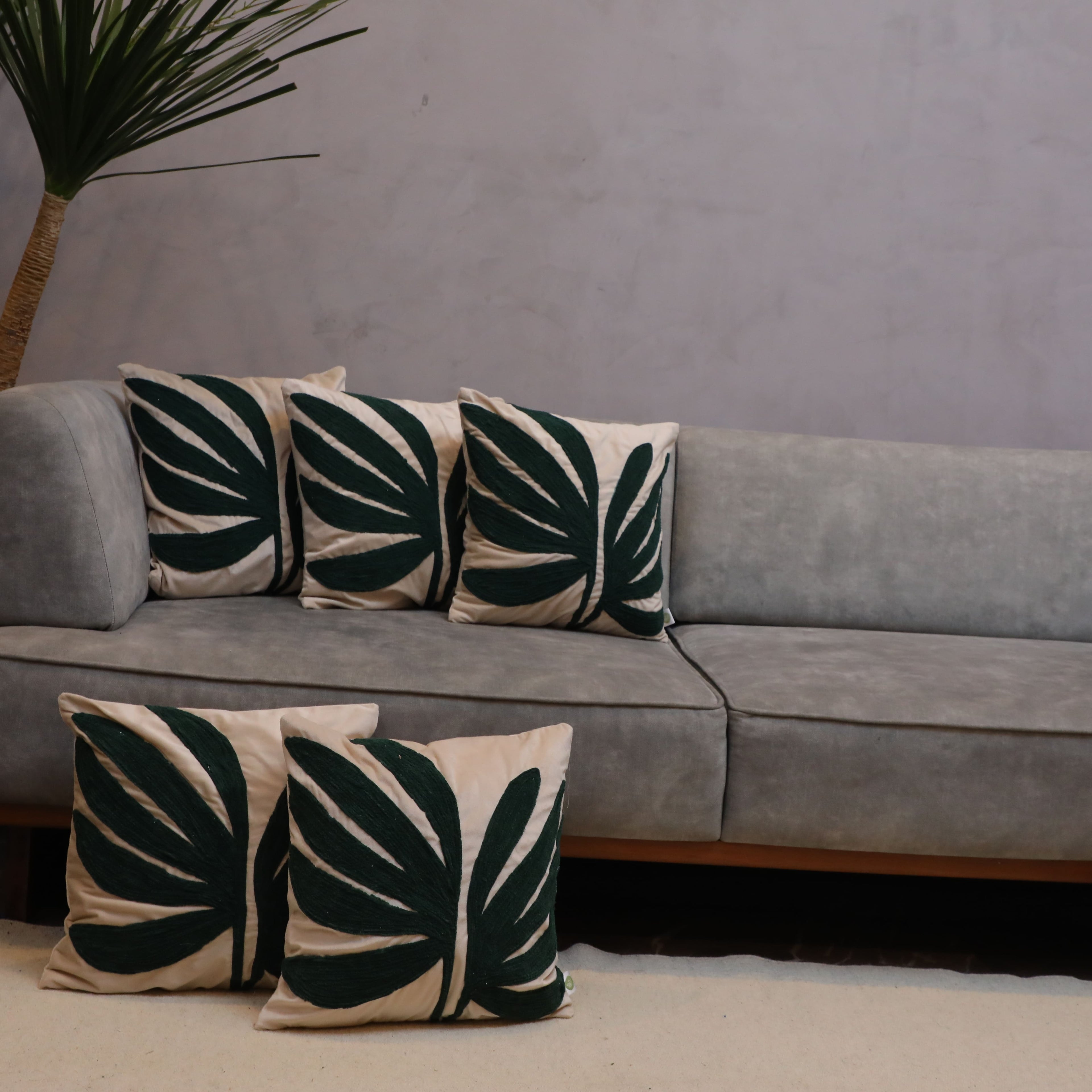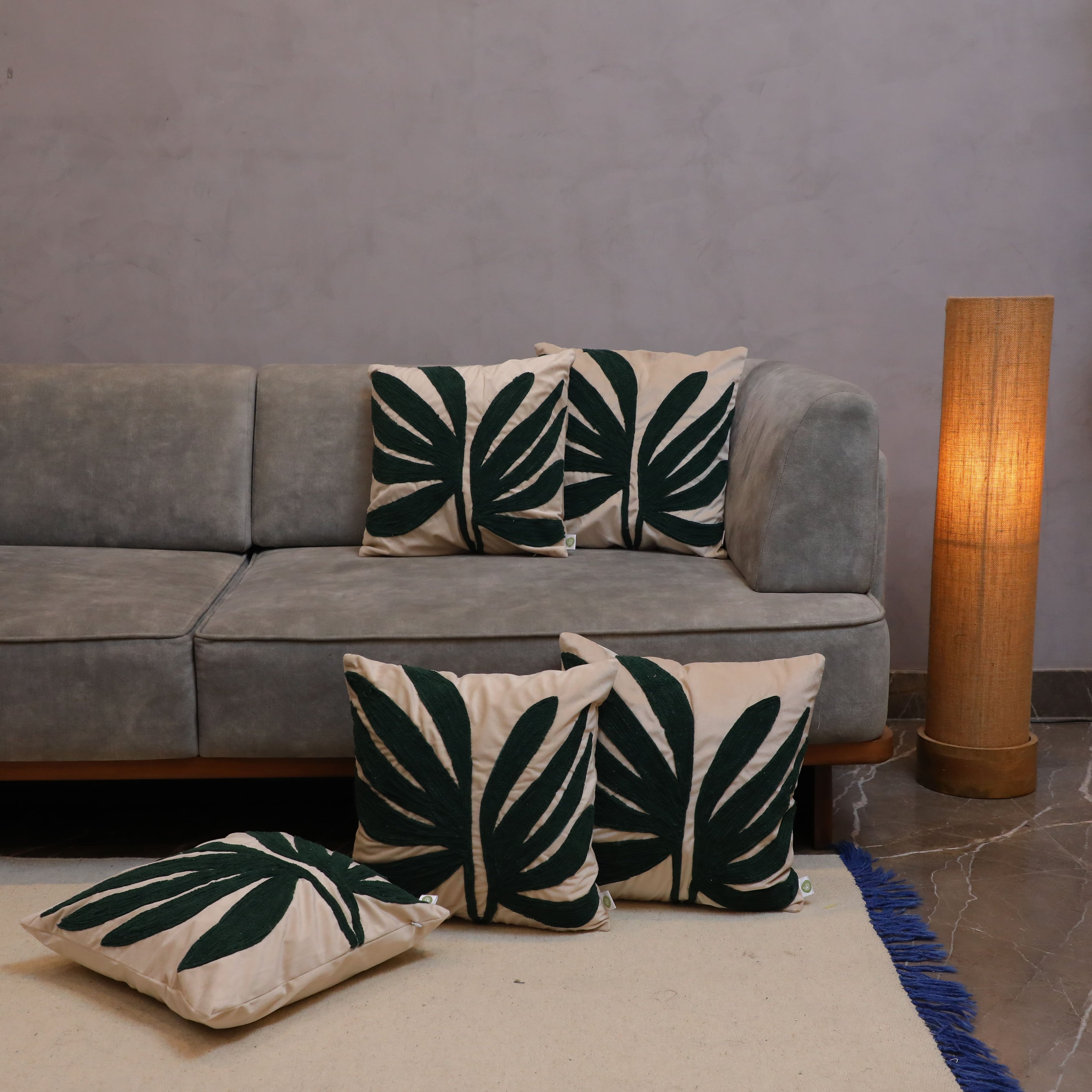 Palm Grandeur Embroidered Tufted Cushion Cover - Set of 5