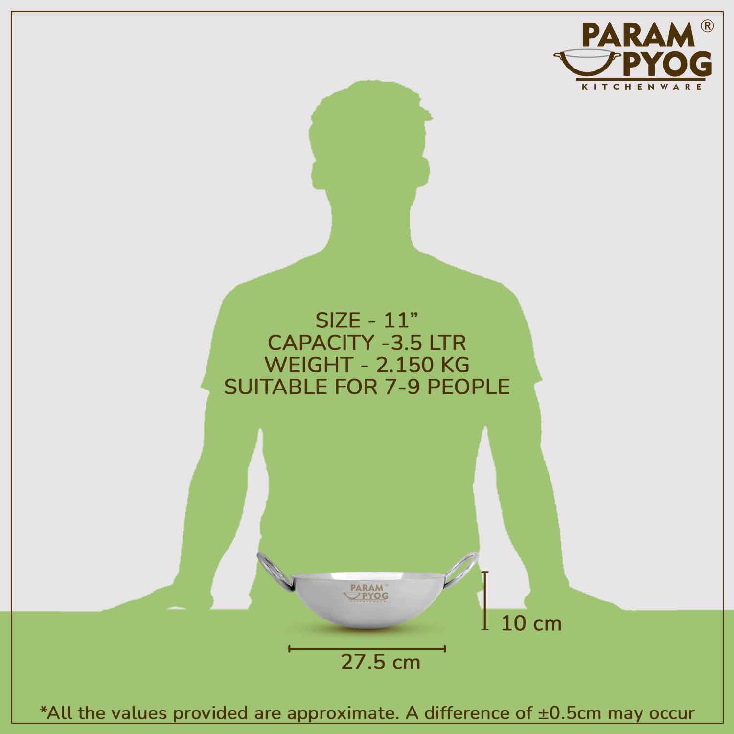 Param Upyog Stainless Steel Deep Kadhai 3.5 Litres - 11'