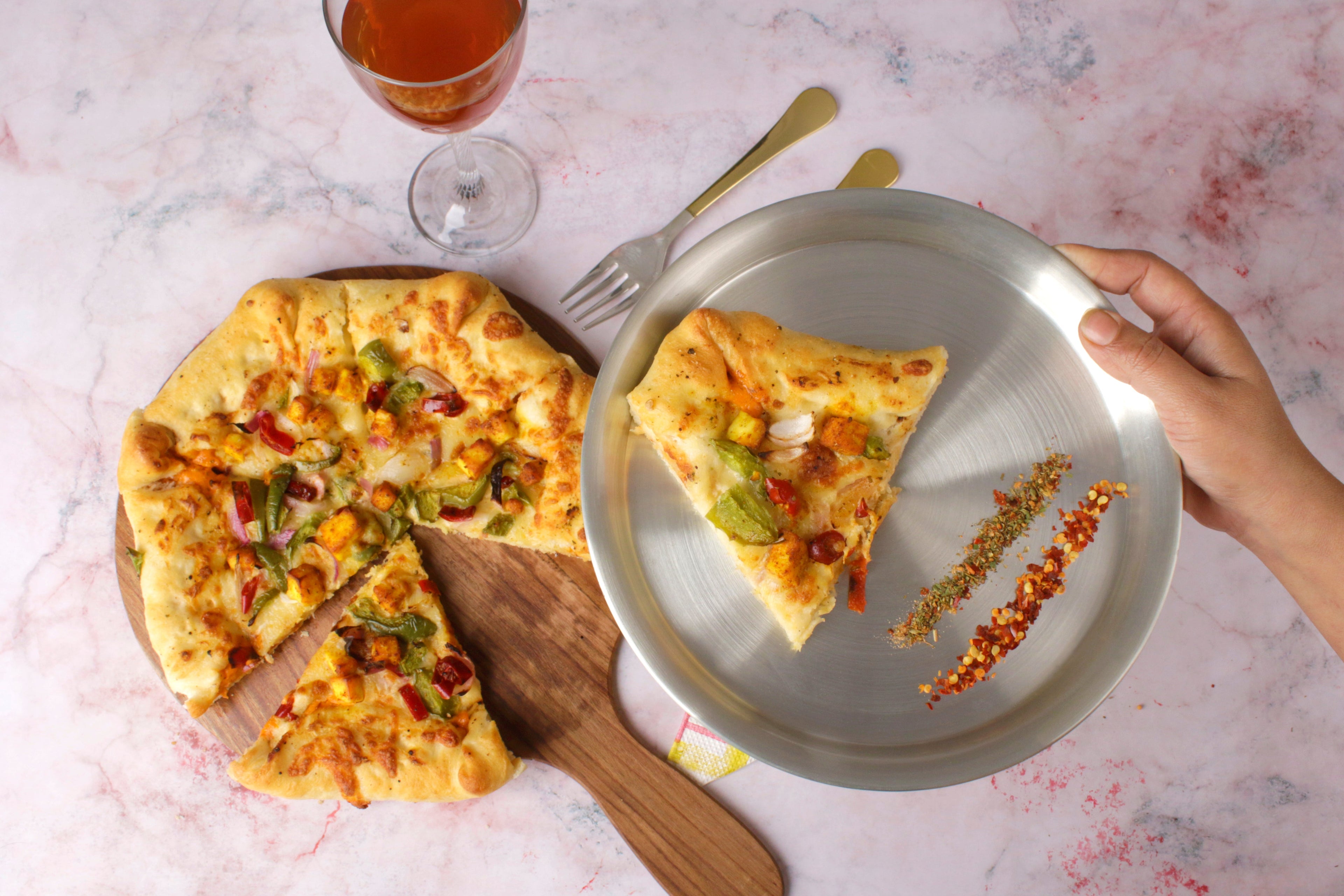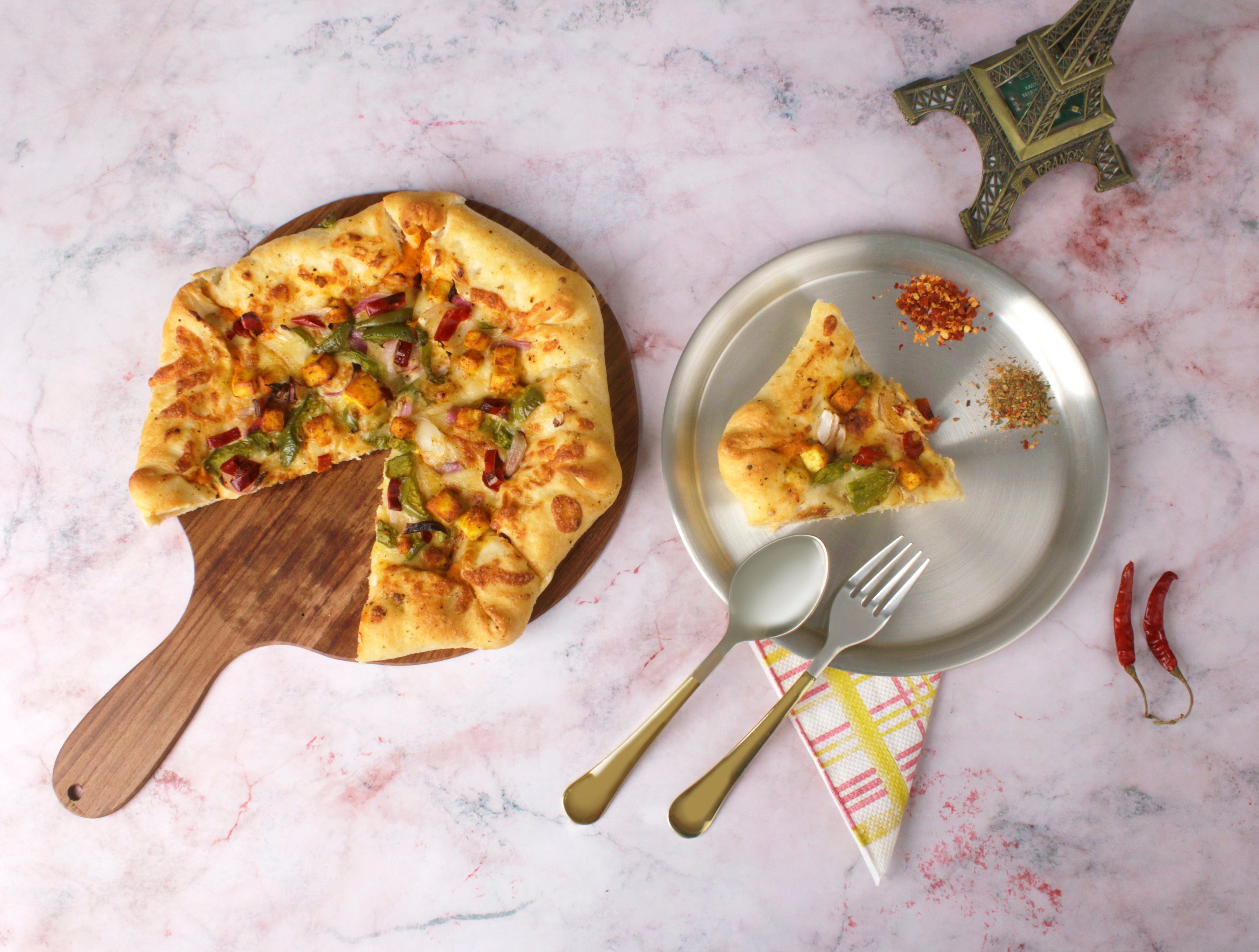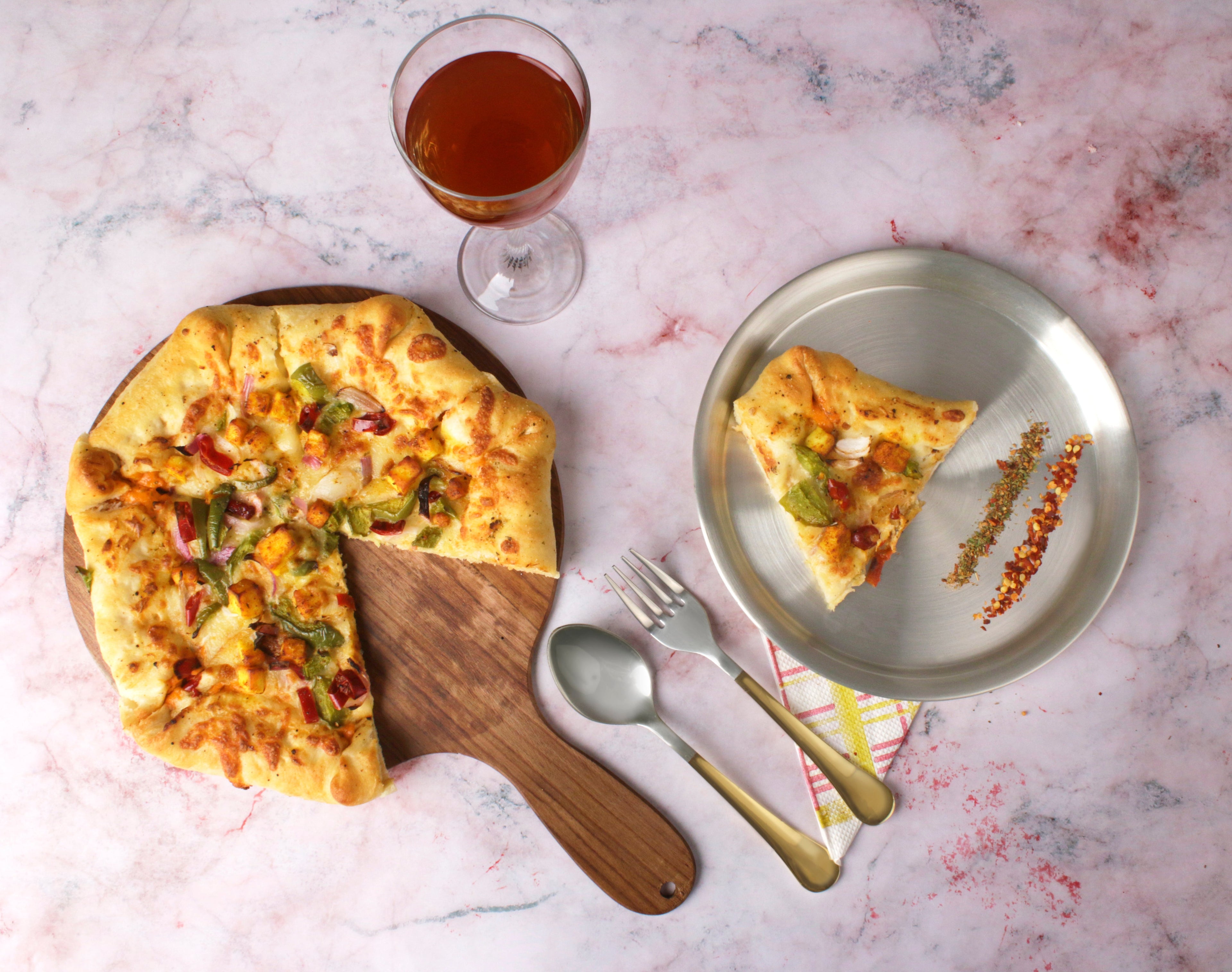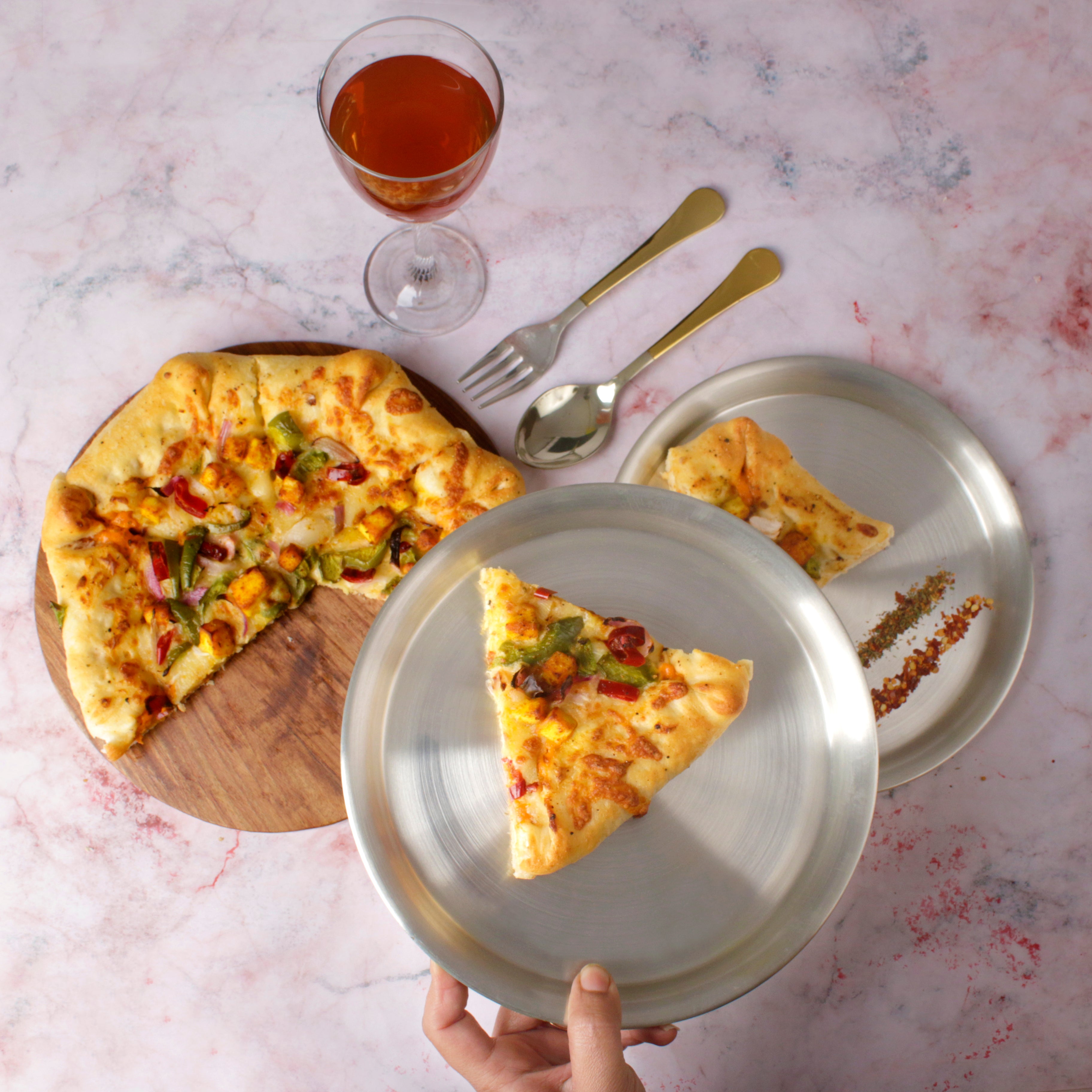 Paramparagat Upyogita Devam Devyani Brass Snacks Plate Set with Cutlery and Tin Coating (Kalai)