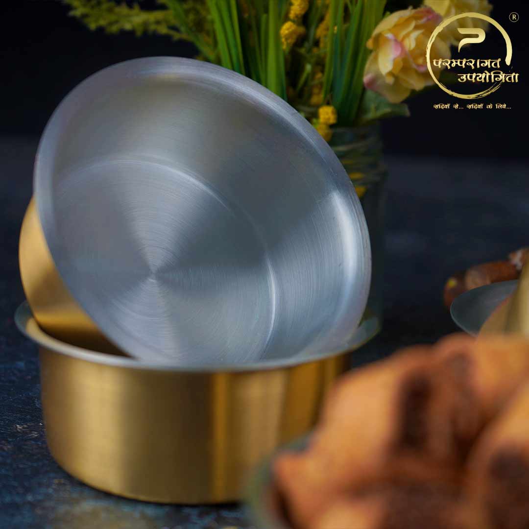 Paramparagat Upyogita Devam Maharani Brass Large Katori (Bowl) Set with Tin Coating (Kalai)