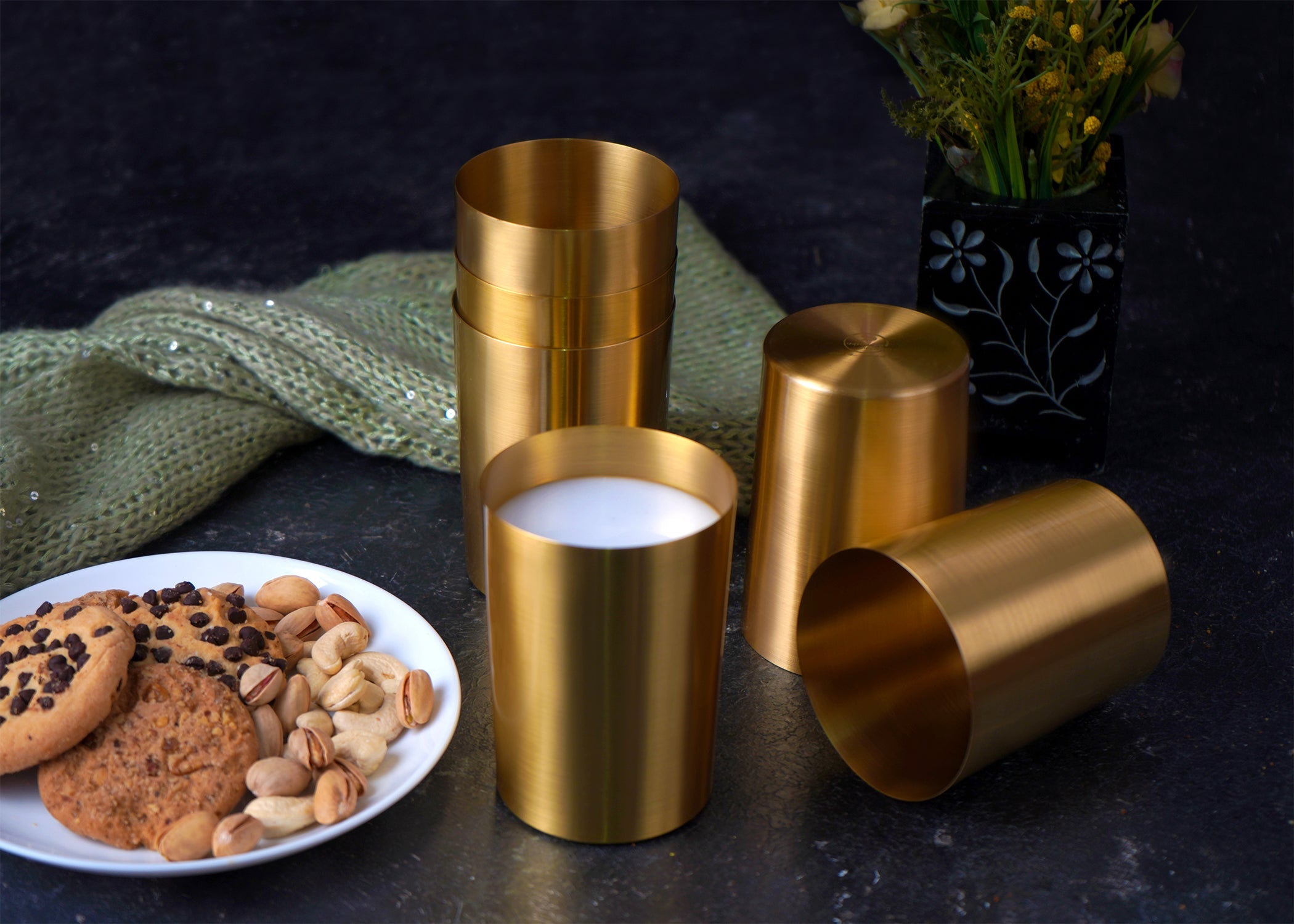Paramparagat Upyogita Swarna Devyani Brass Glass Set