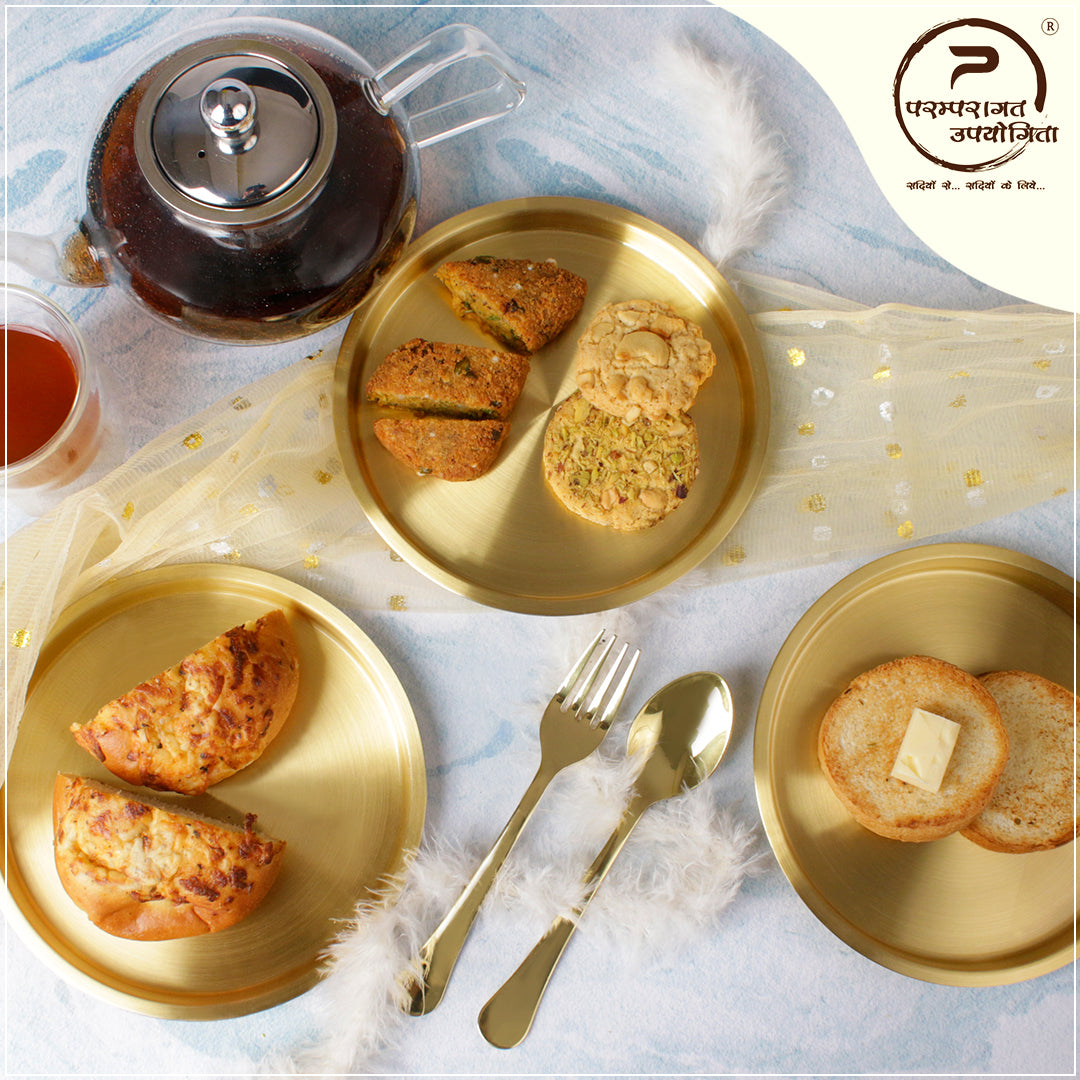 Paramparagat Upyogita Swarna Devyani Brass Snacks Set with Cutlery
