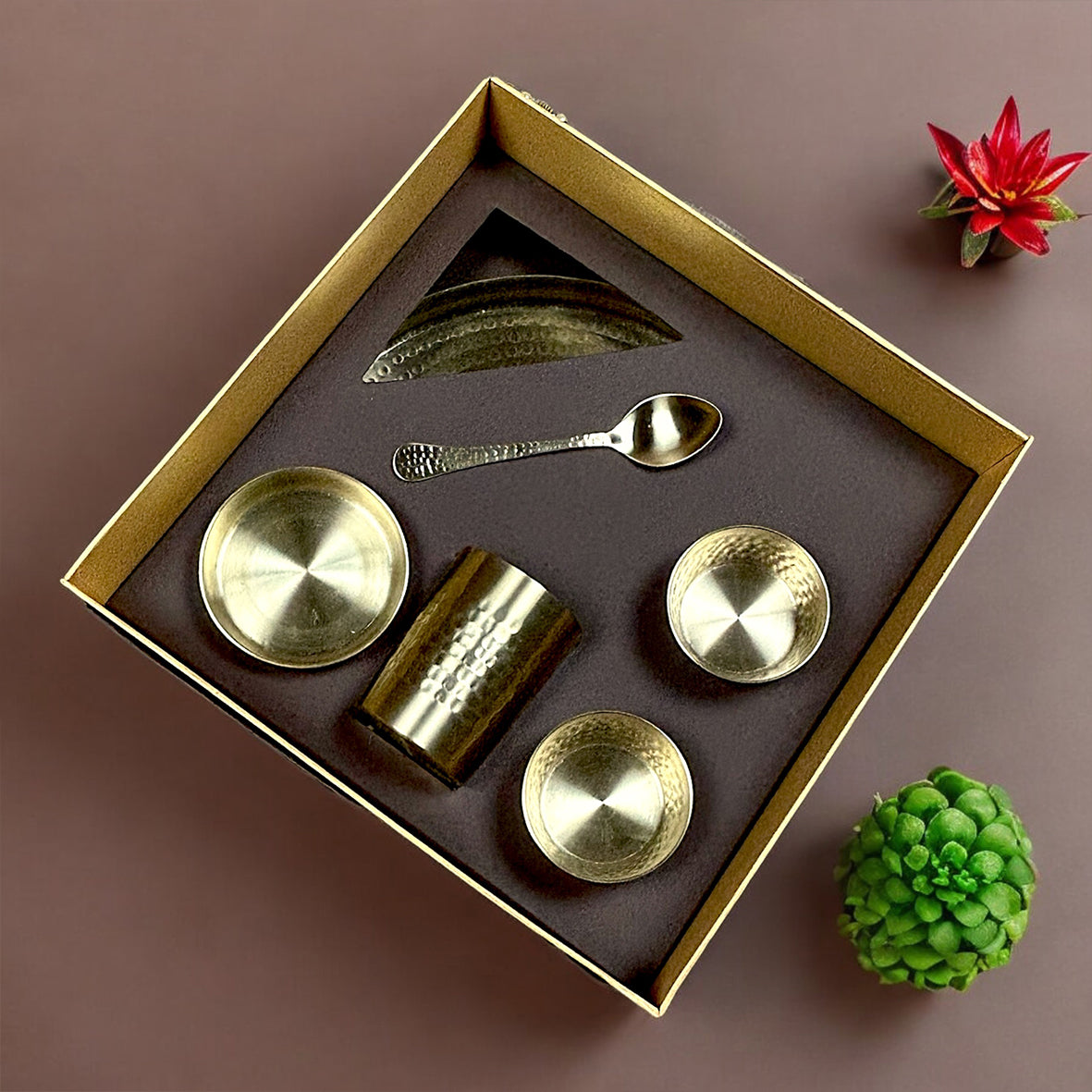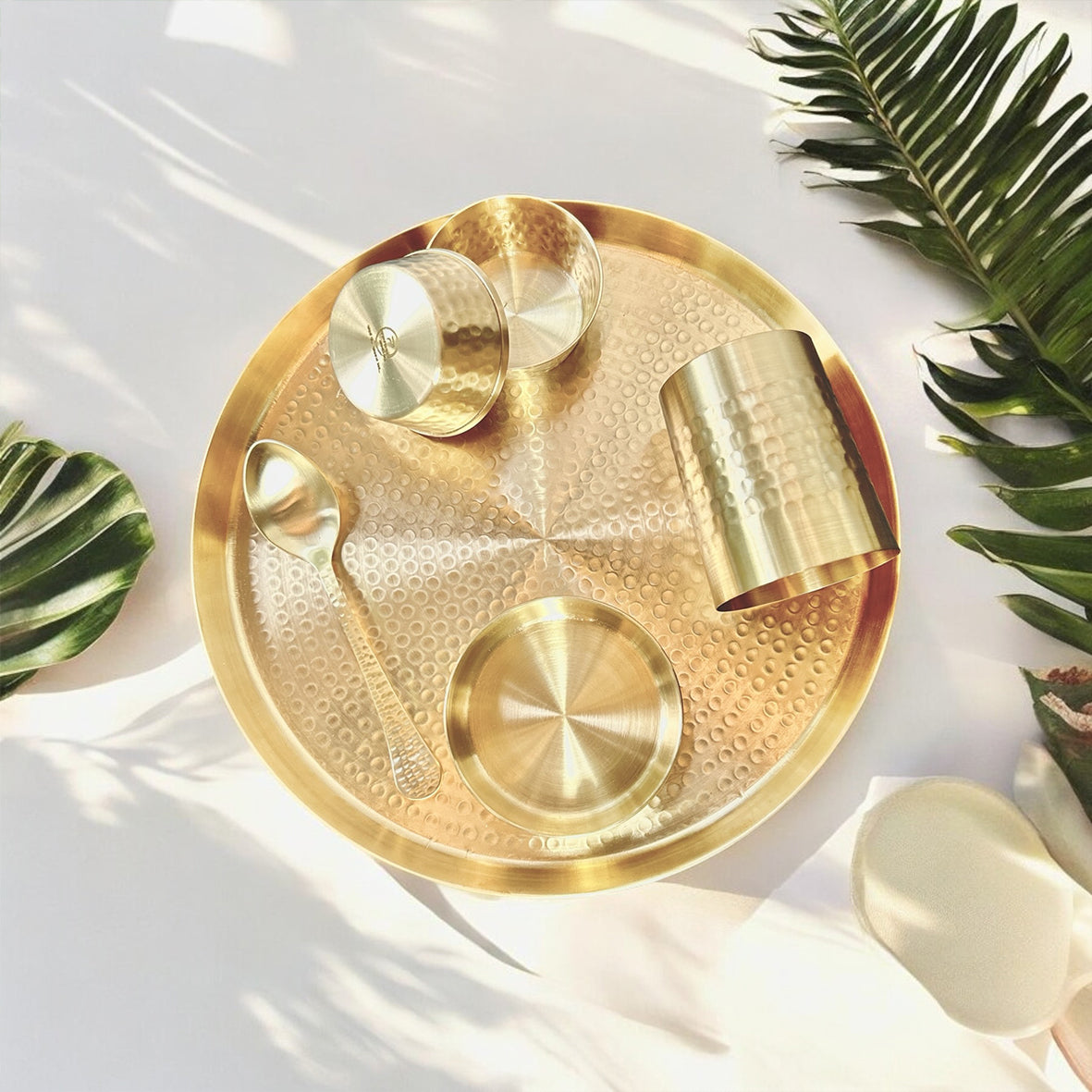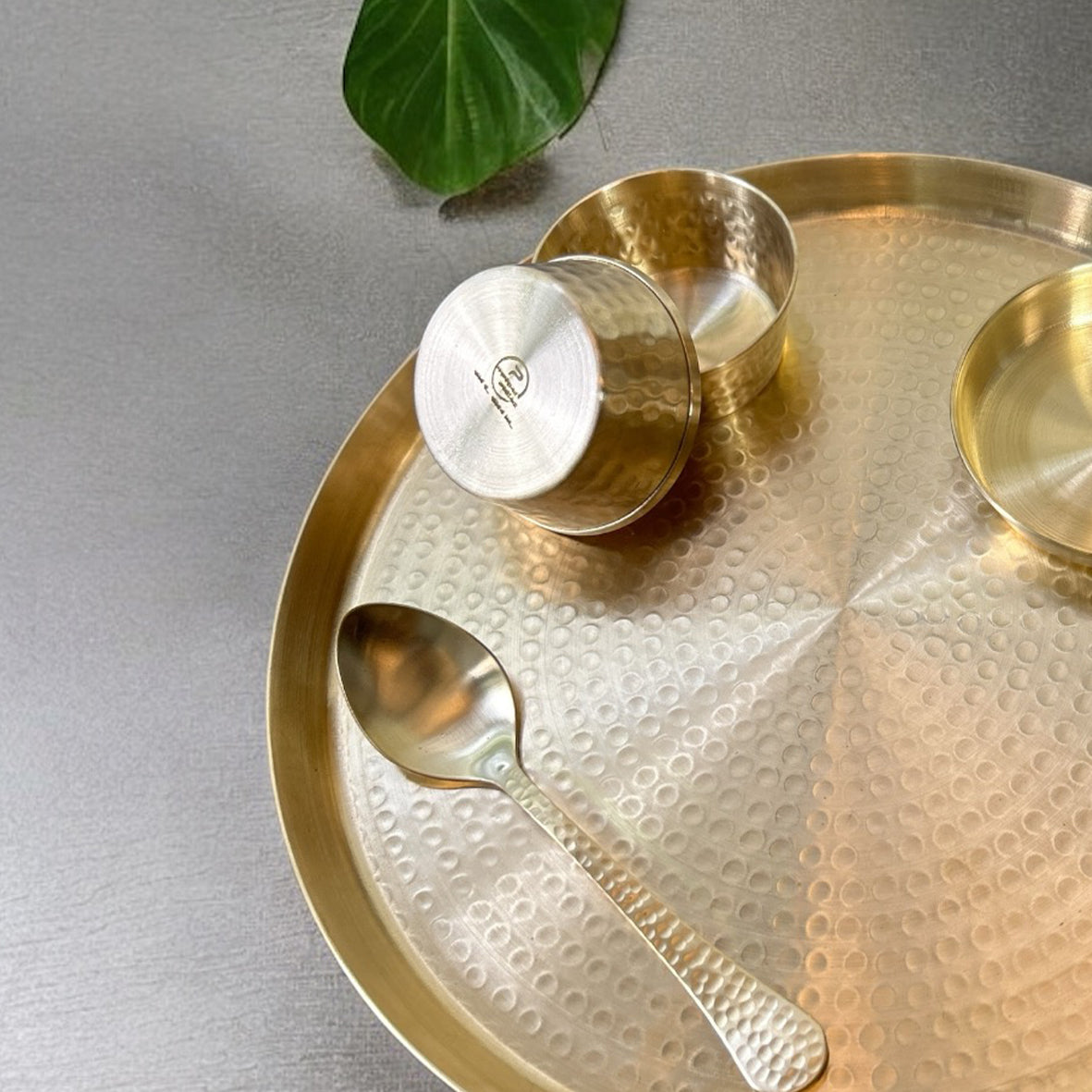 Paramparagat Upyogita Swarna Kalki Brass Thali Set (Hammered) 13'