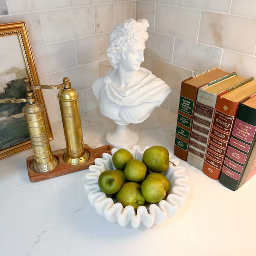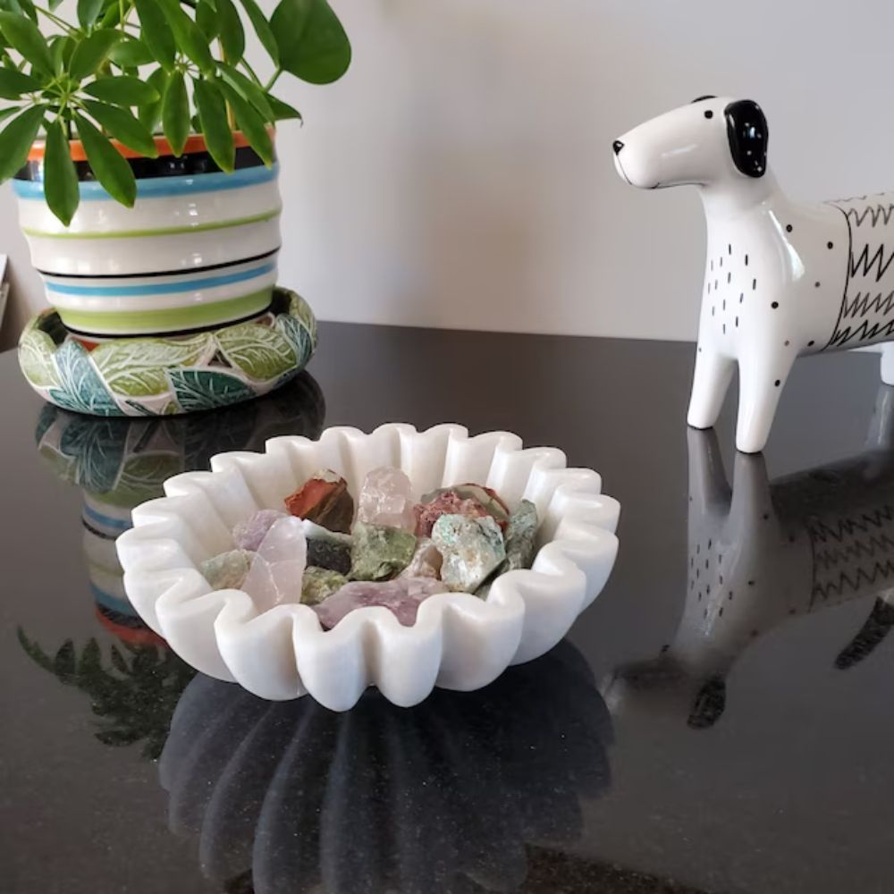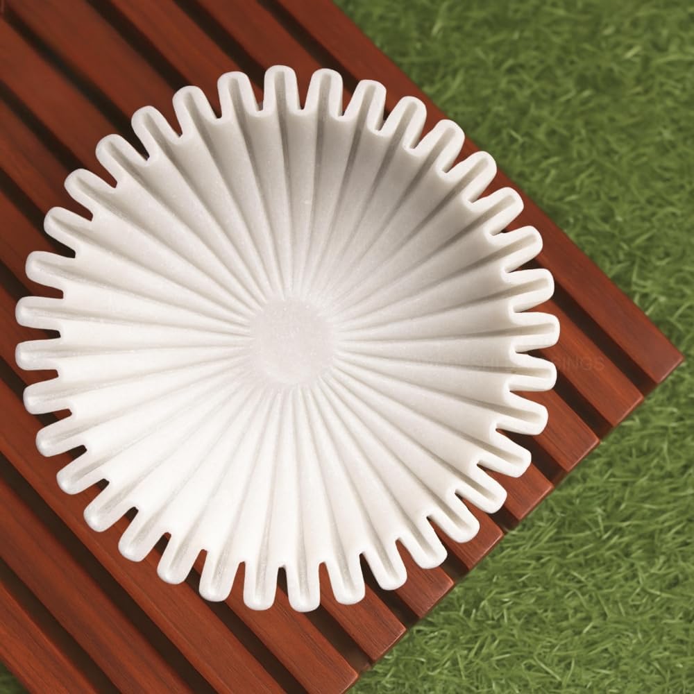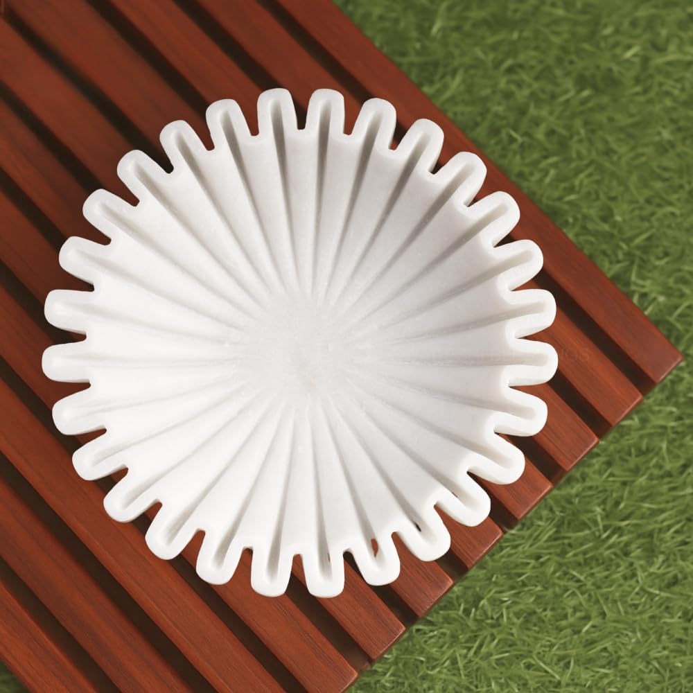 Premium Handcrafted Marble Ruffle Bowl | Antique Scalloped Bowl | Fluted Bowl | Marble Large Decorative Bowl | White Decorative Bowls for Home Decor | Key Bowl | Fruit Bowl | Ring Dish | Organic Modern Home Decor Bowl | 6-18 Inches