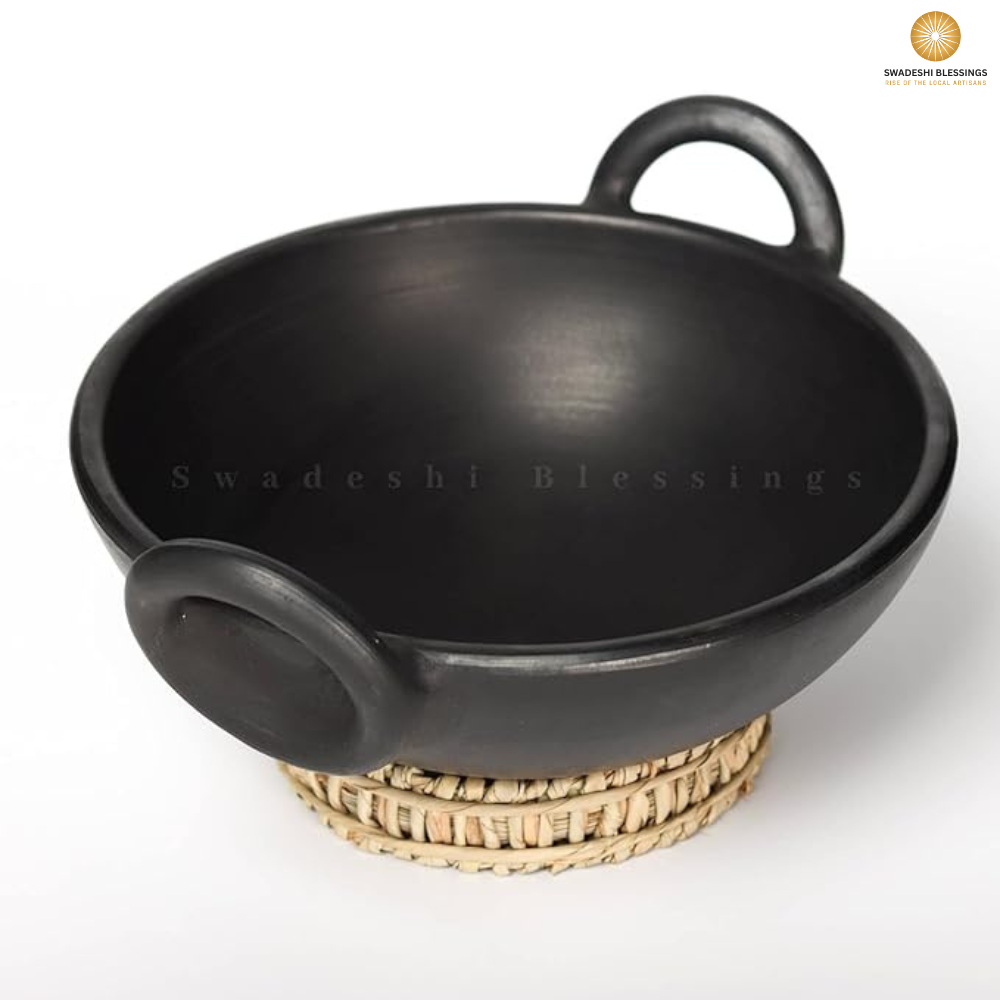 Unglazed Clay Pot for Cooking | Earthen Kadhai | Terracota Kadhai | Clay Kadai for Serving, 1.8L