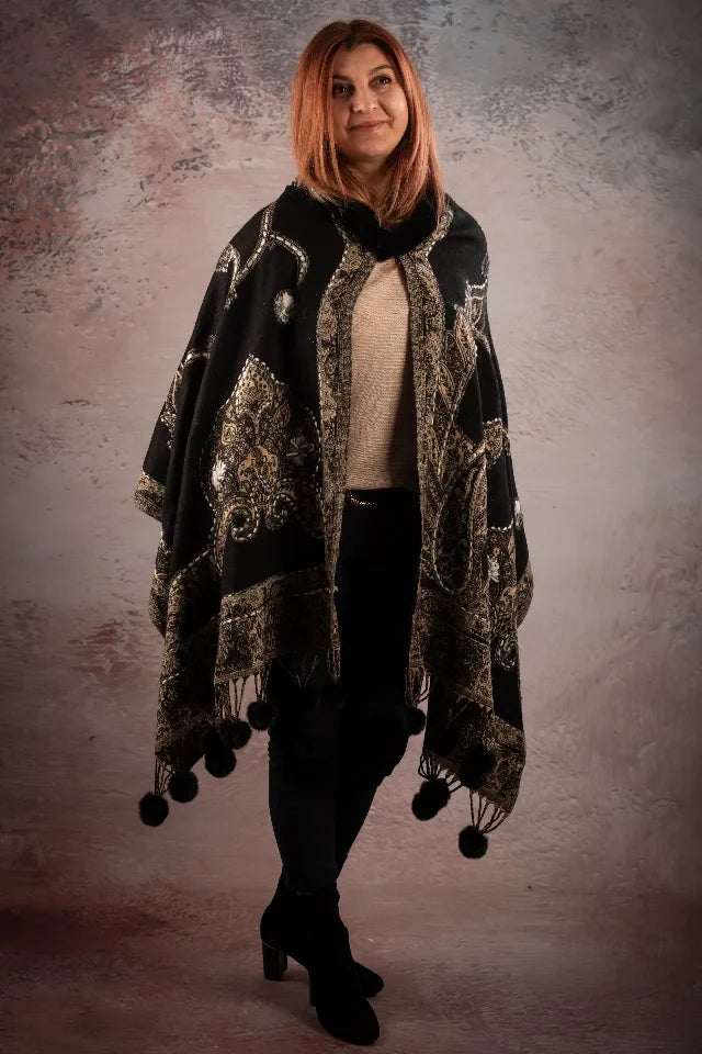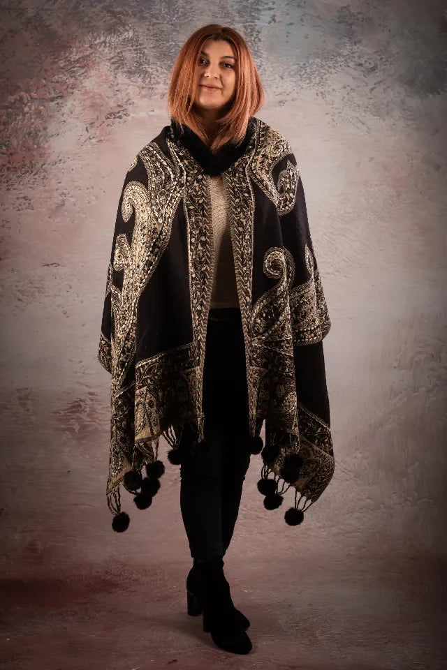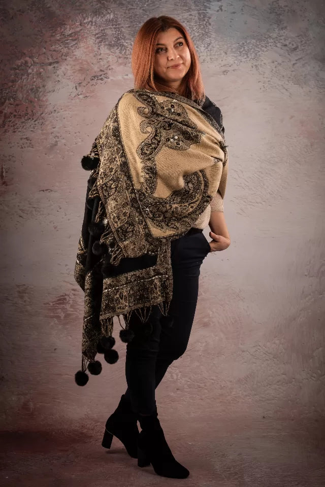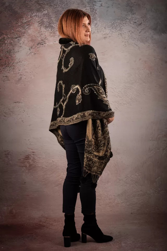 Sal negru-bej cu broderie hand made si blanita artificiala India