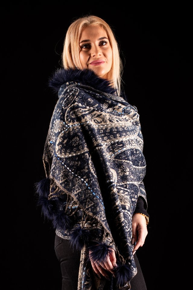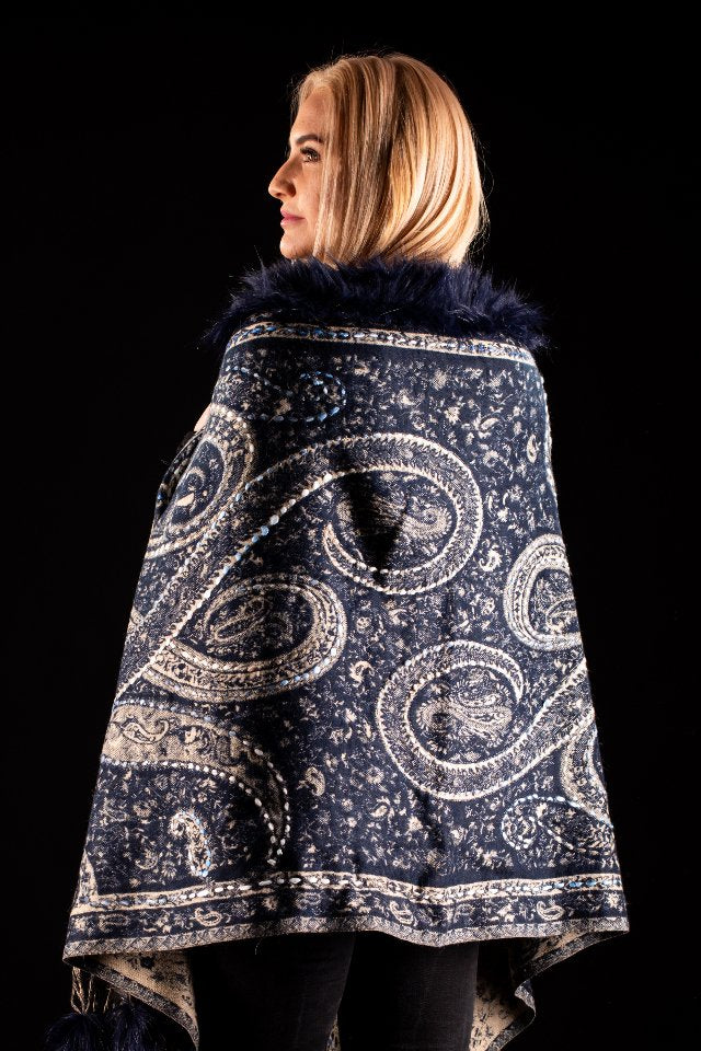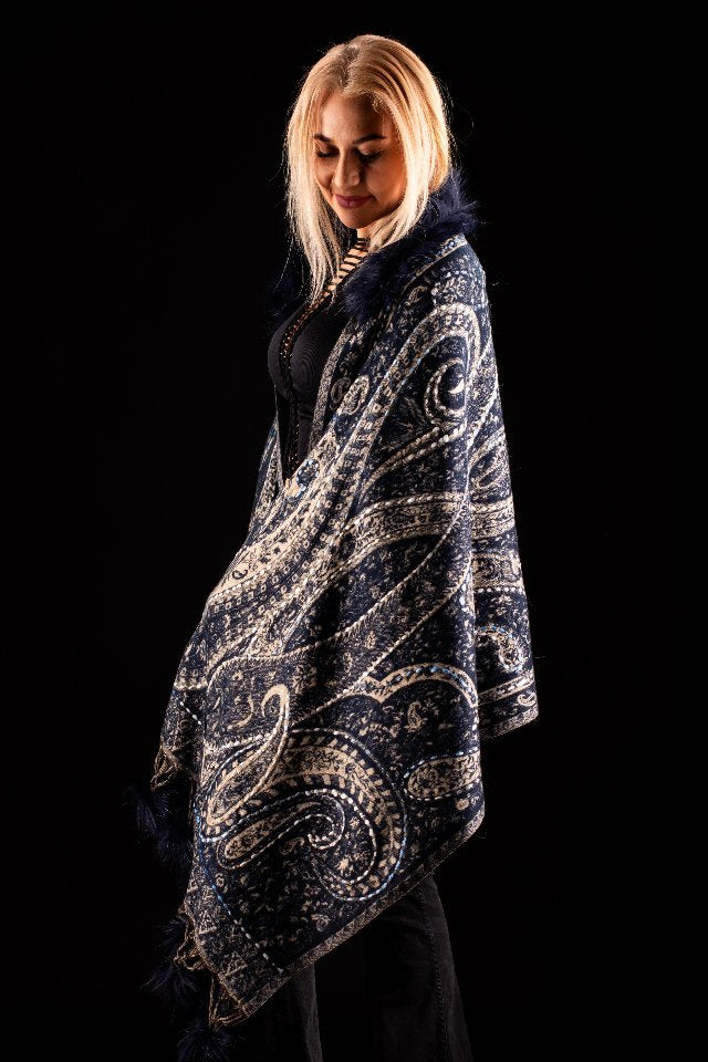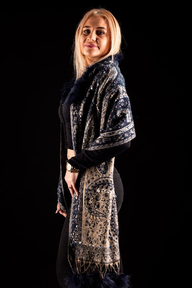 Sal negru-bej cu broderie hand made si blanita neagra India